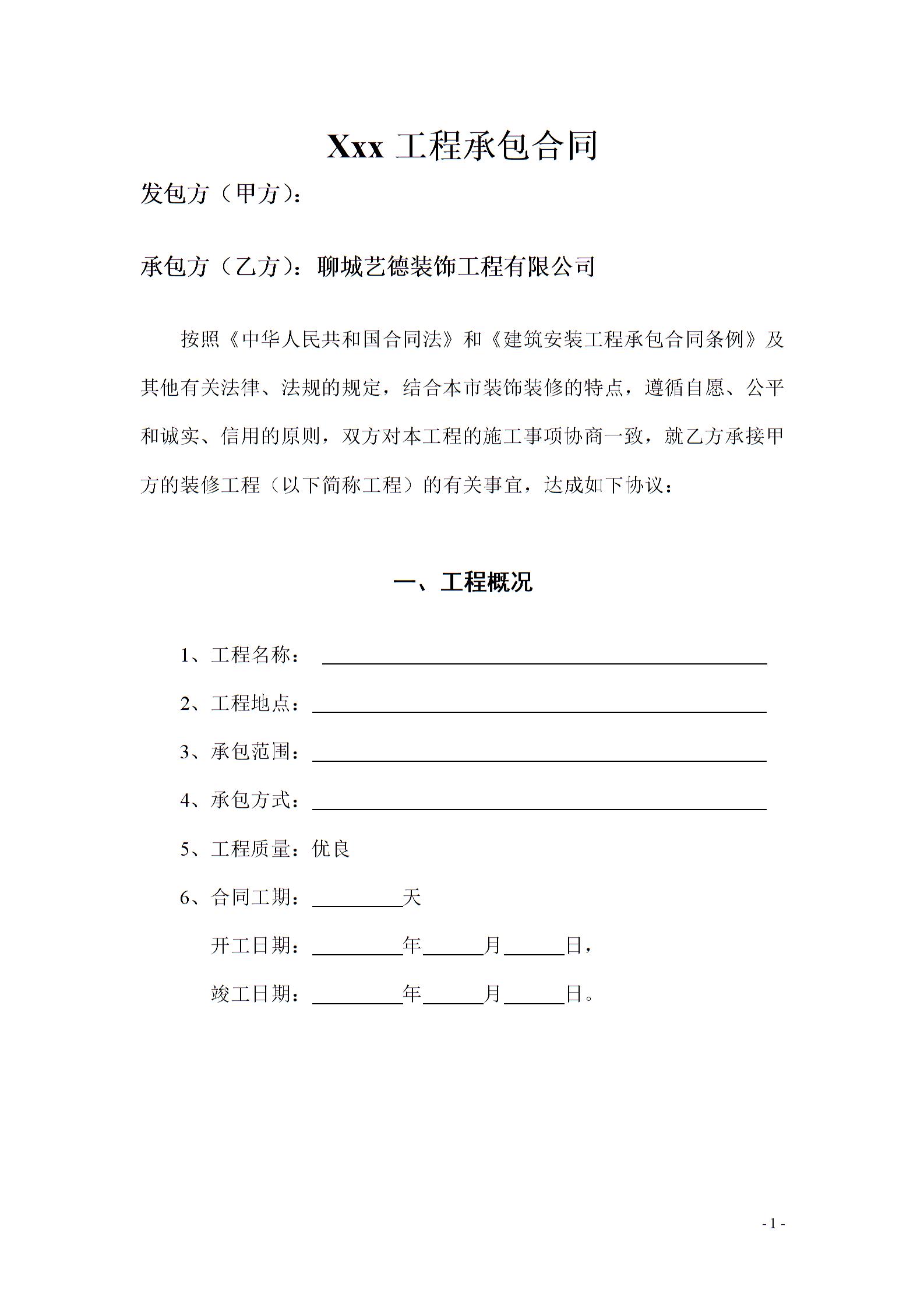 工装承包合同模板