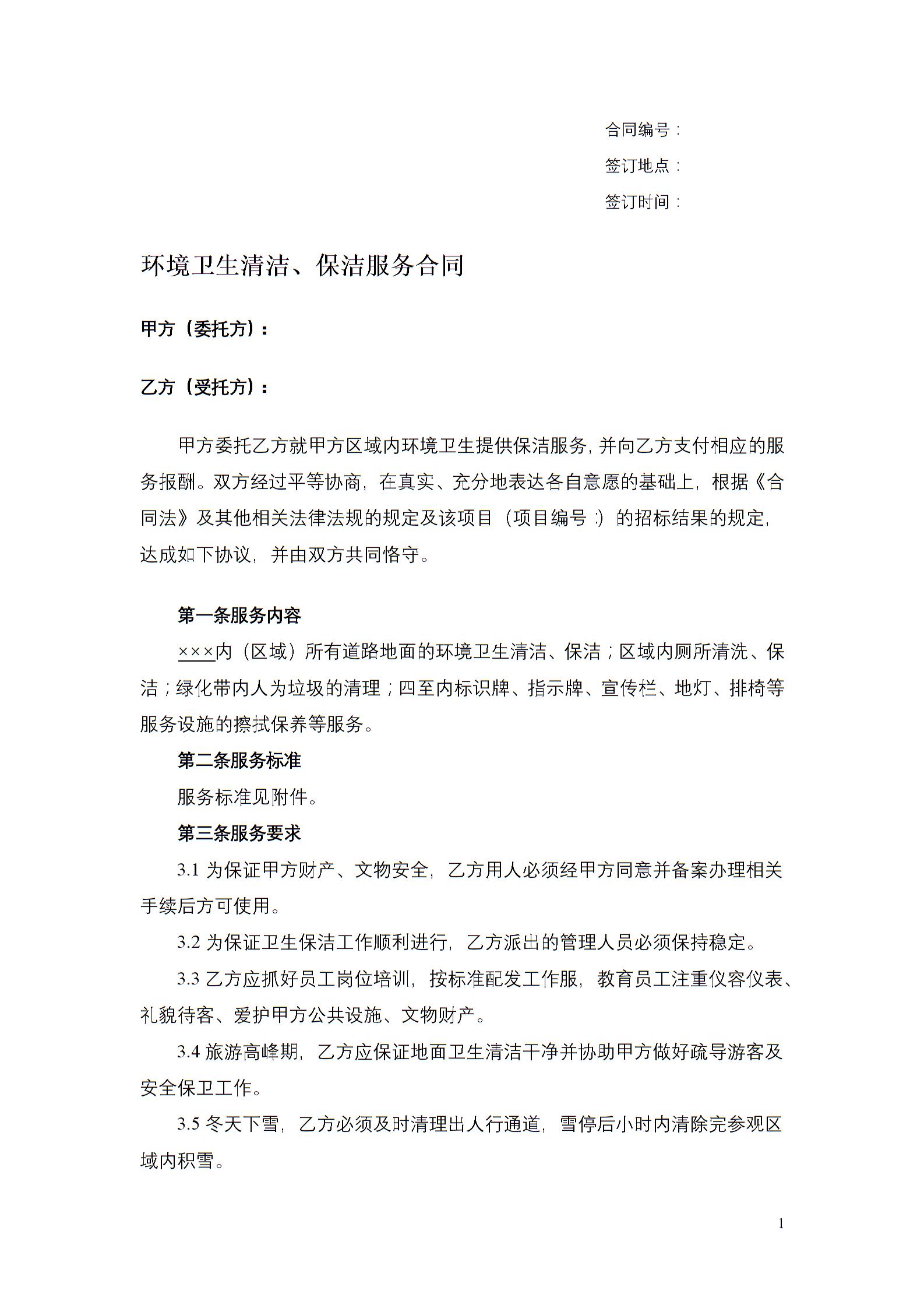 环境卫生清洁、保洁服务合同