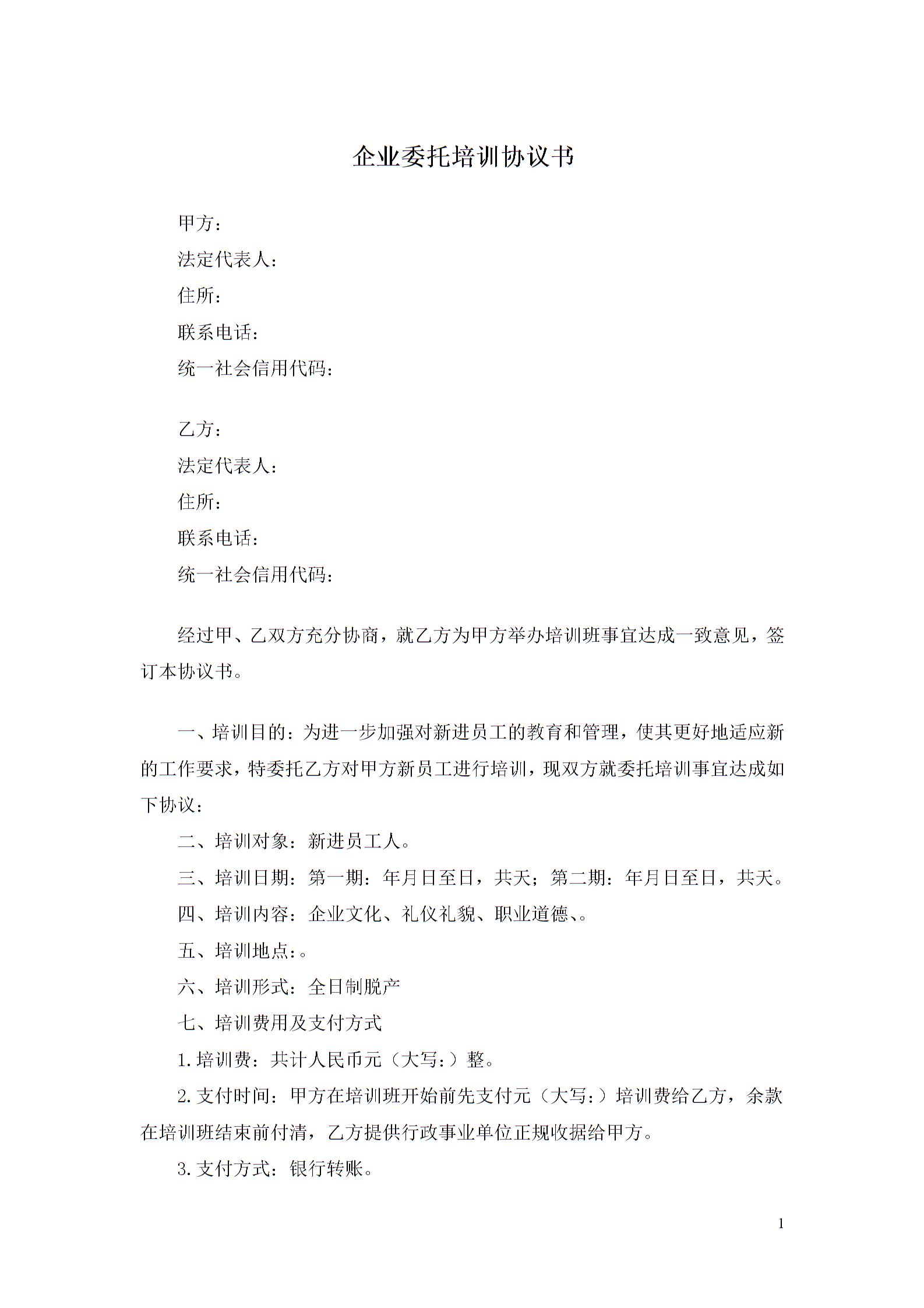 企业委托培训协议书