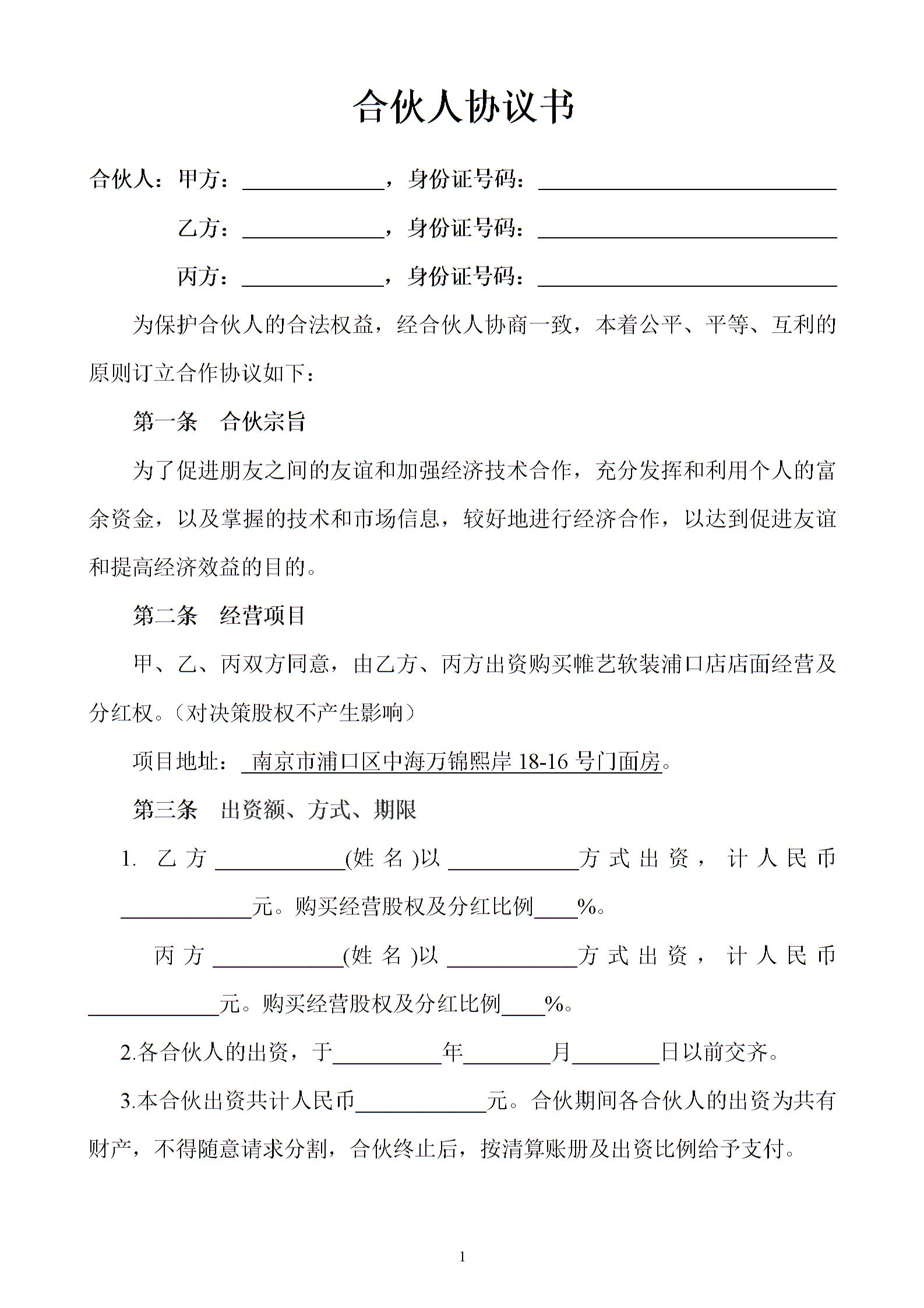 合伙经营合同书