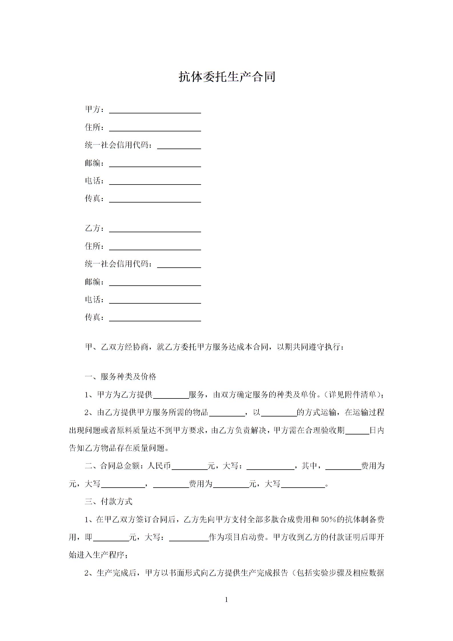 抗体委托生产合同