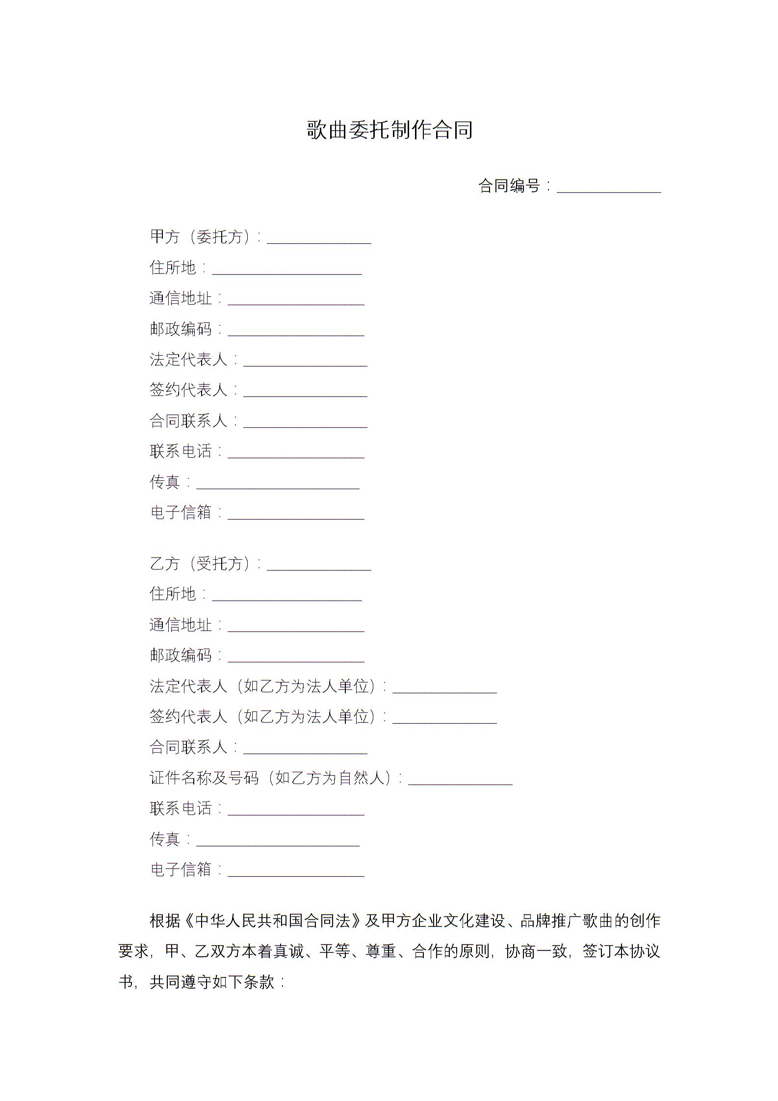 歌曲委托制作合同