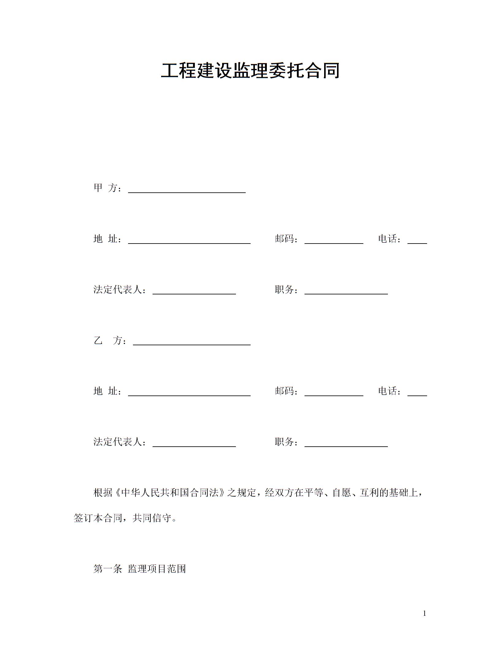 工程建设监理委托合同