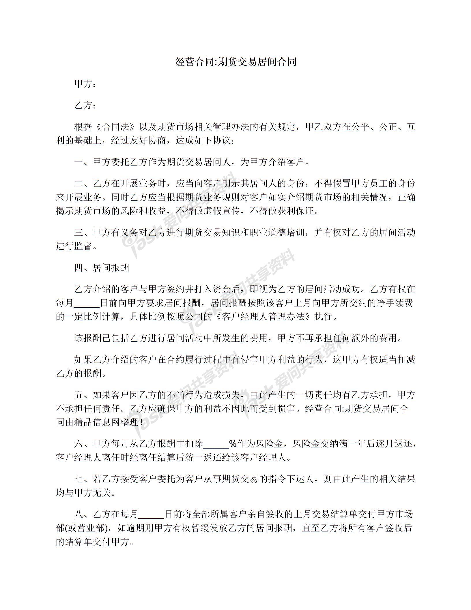 经营合同:期货交易居间合同