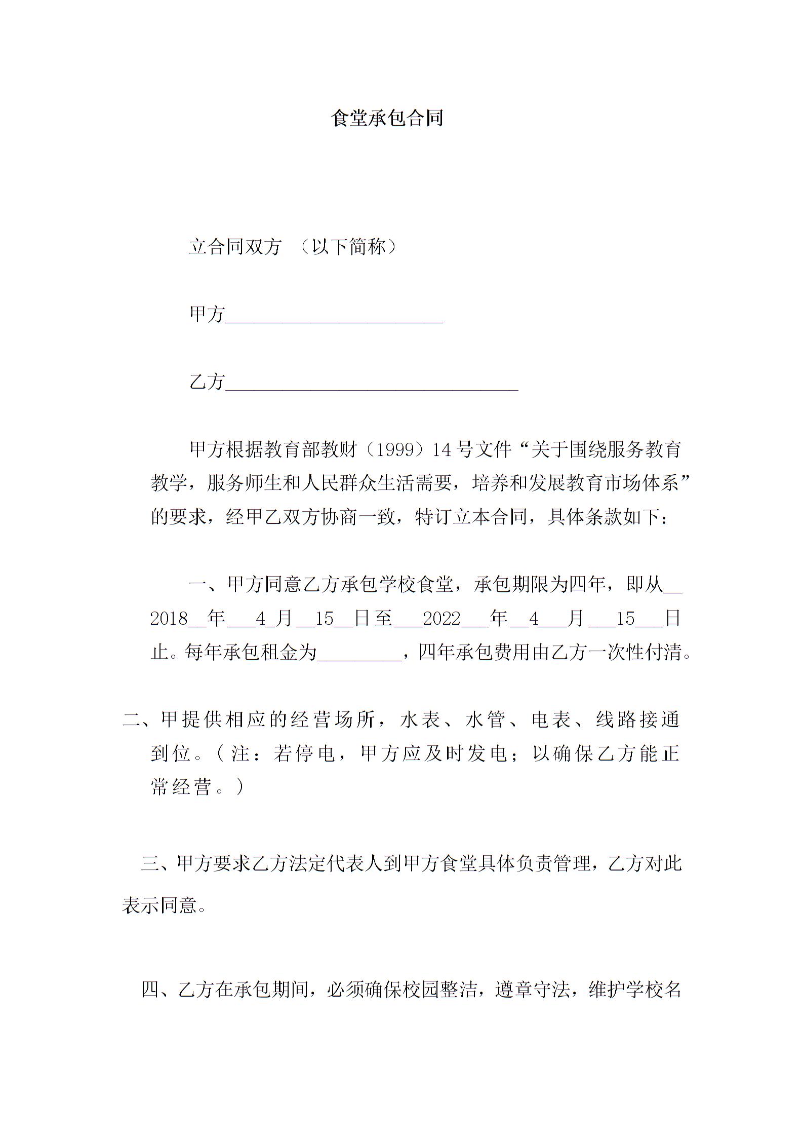 学校食堂承包合同
