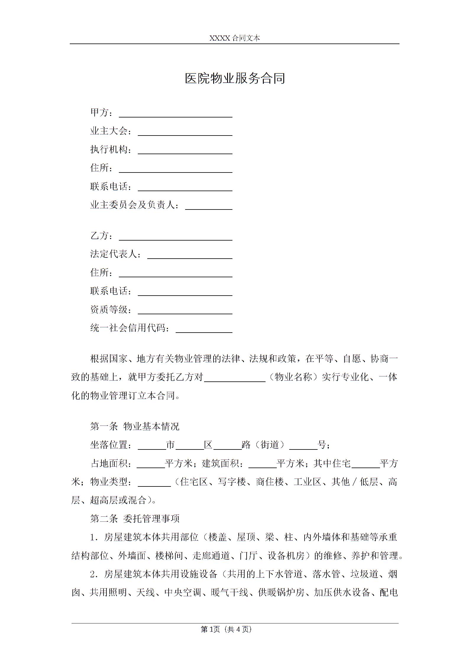 医院物业服务合同