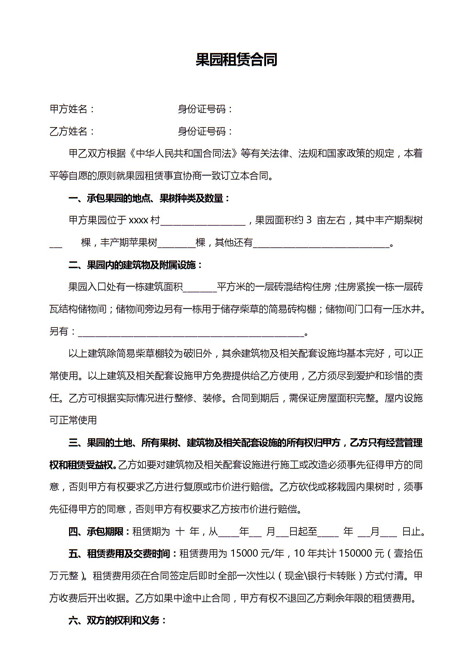 果园租赁承包合同