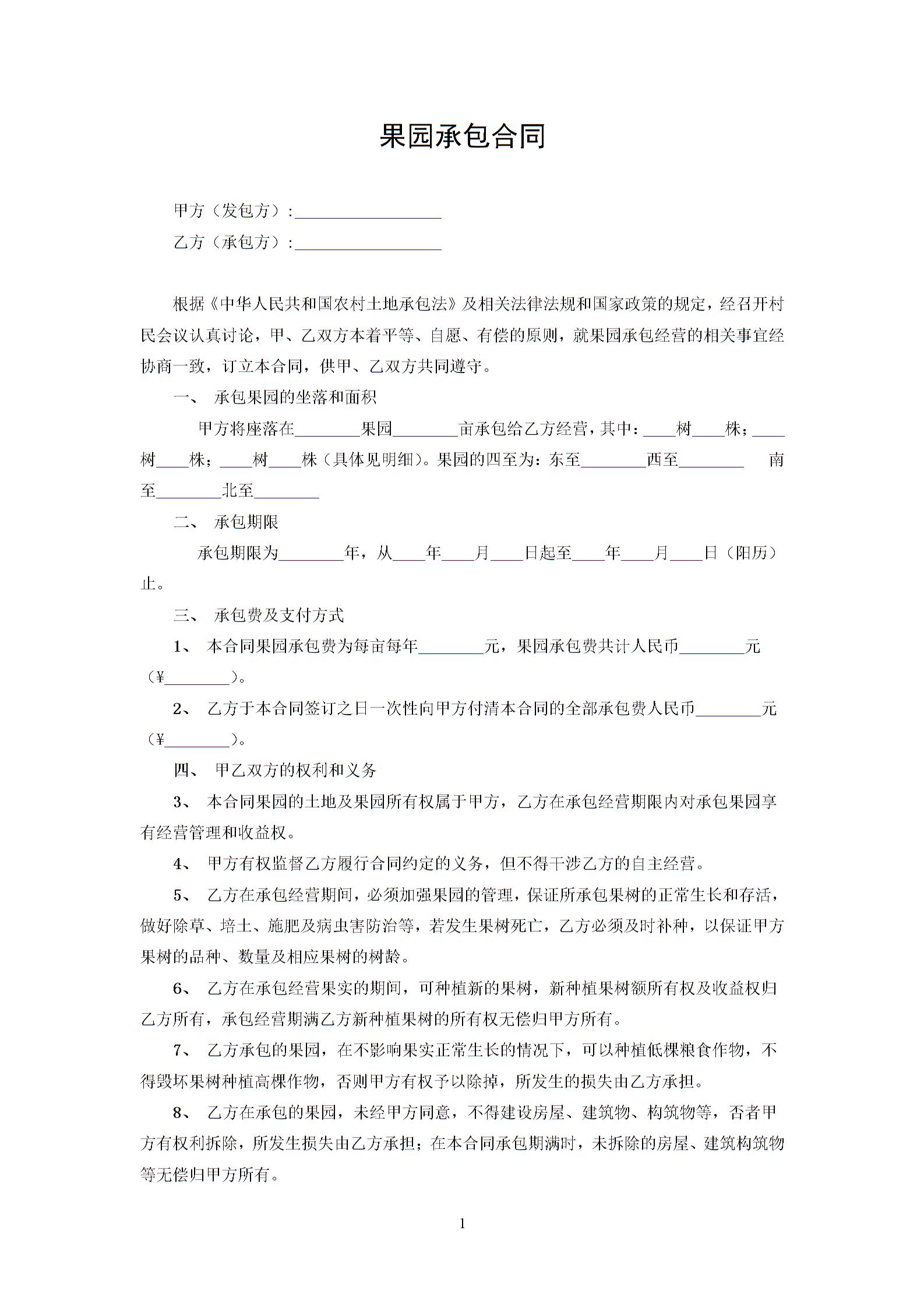 农村果园承包合同