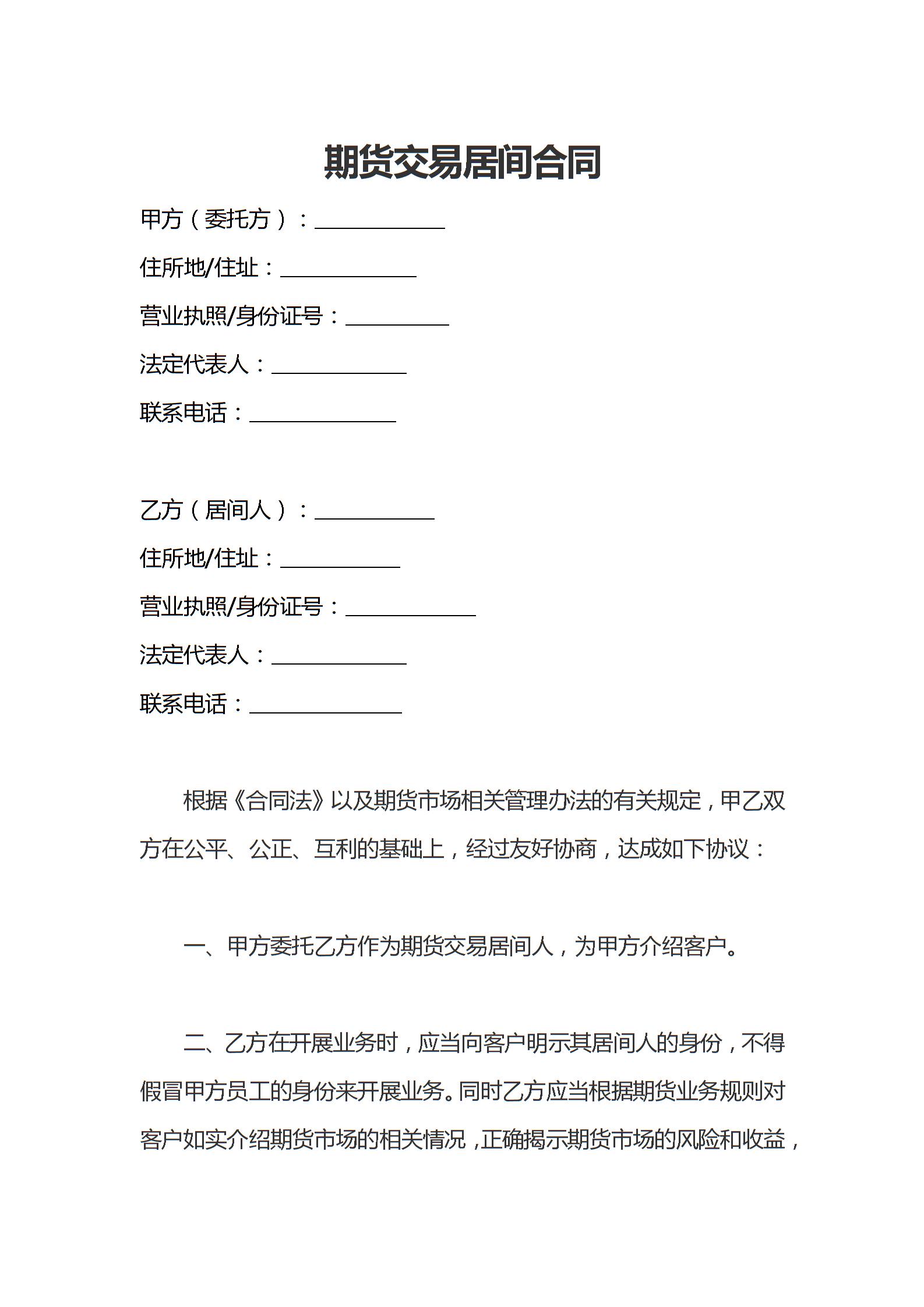 期货交易居间合同 范本