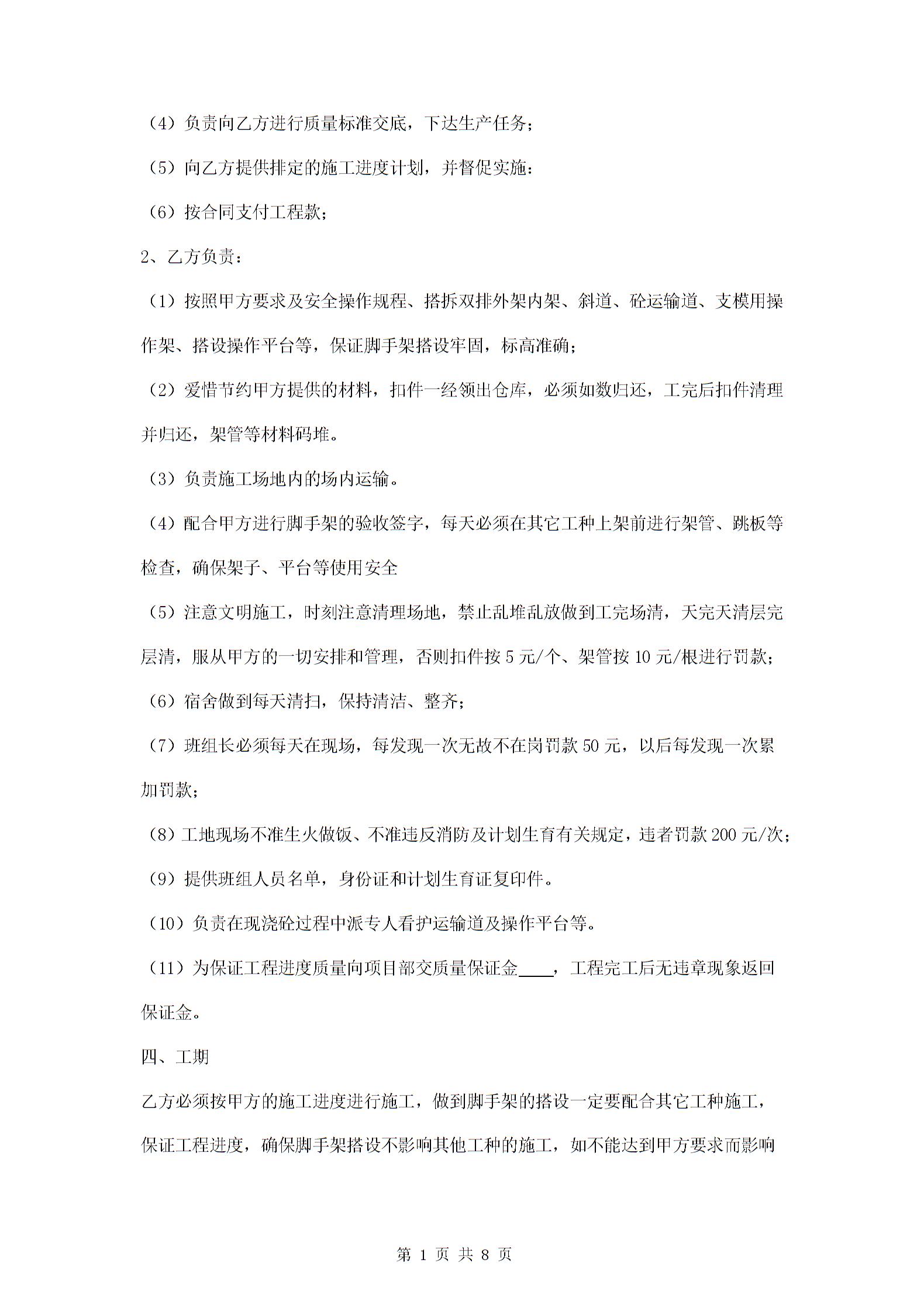 架子工承包合同三篇范本模板