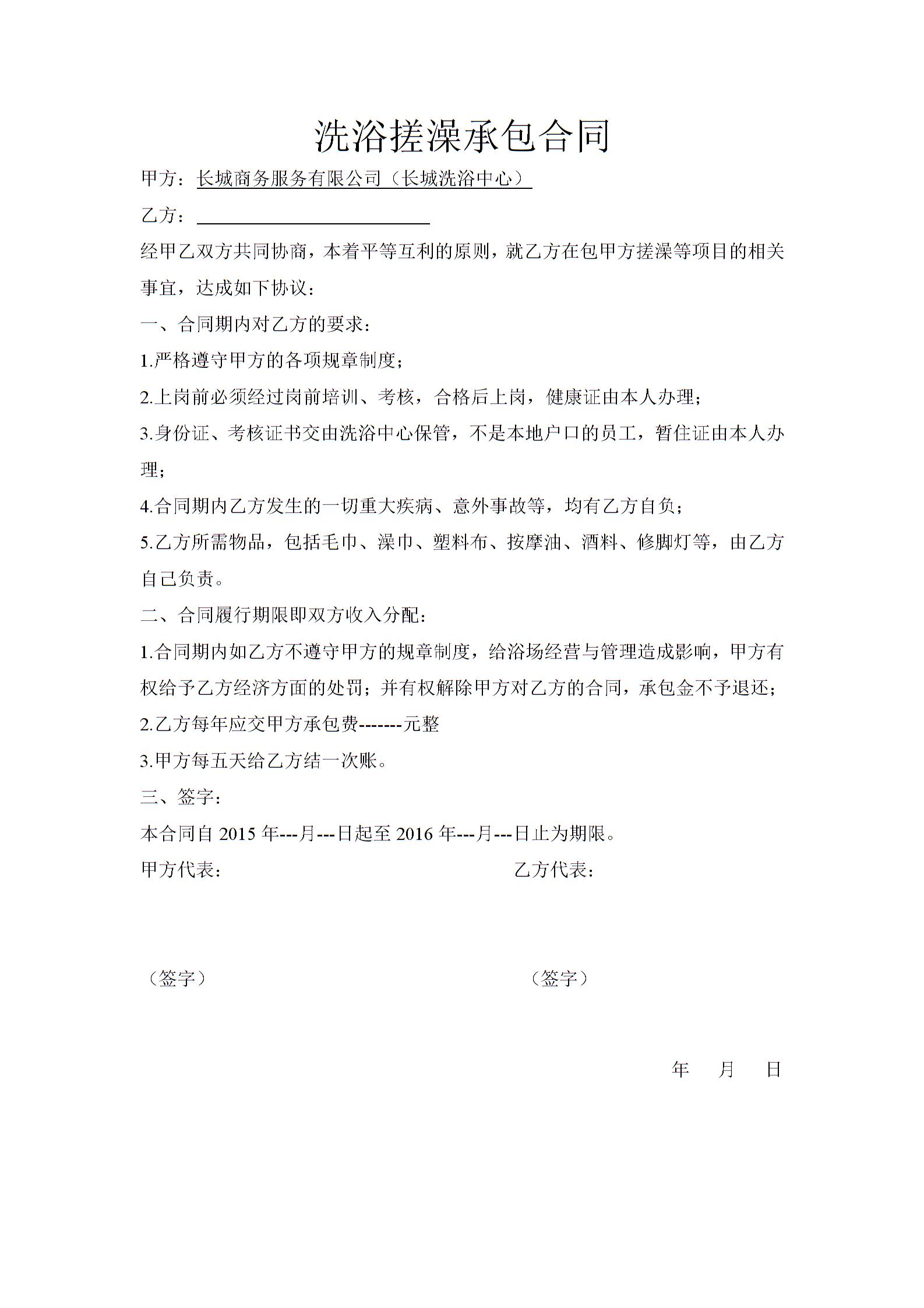 洗浴搓澡承包合同