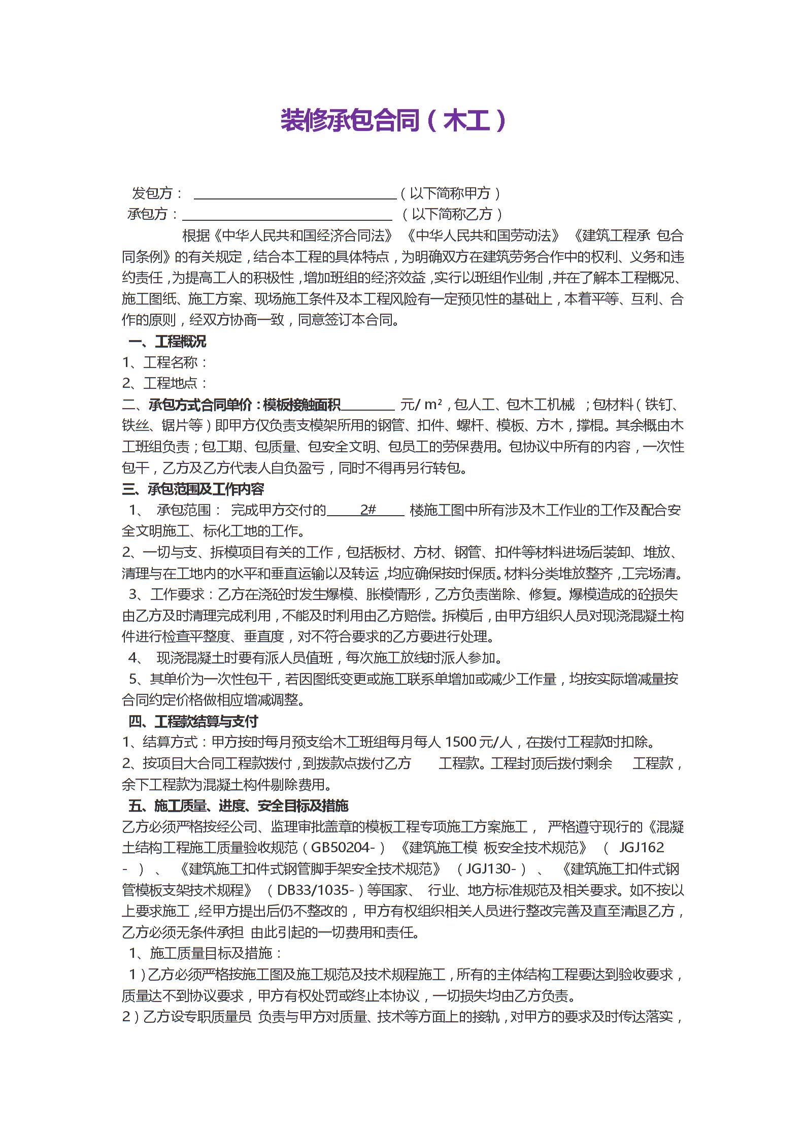 装修承包合同(木工)