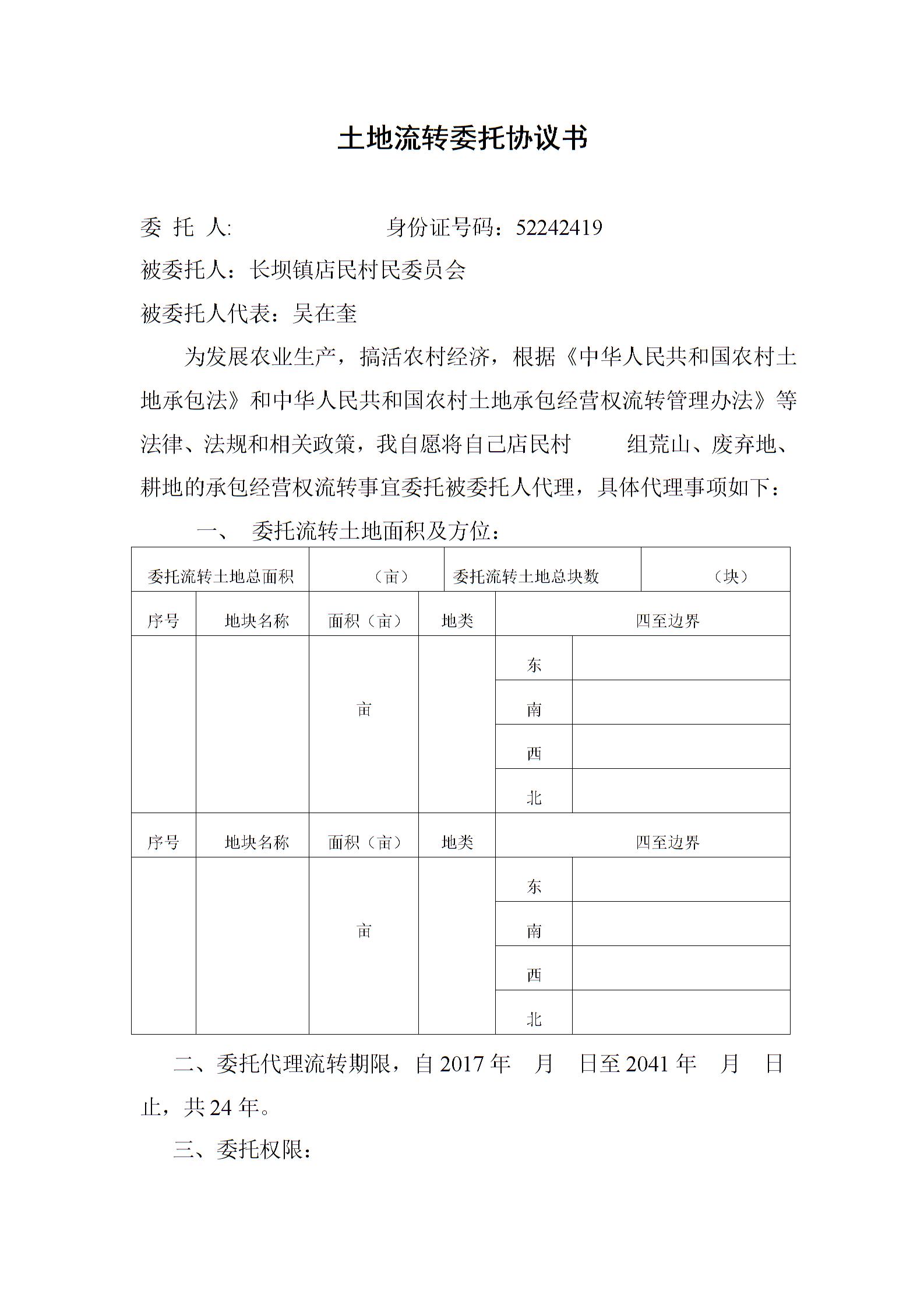 店民村土地流转委托协议书