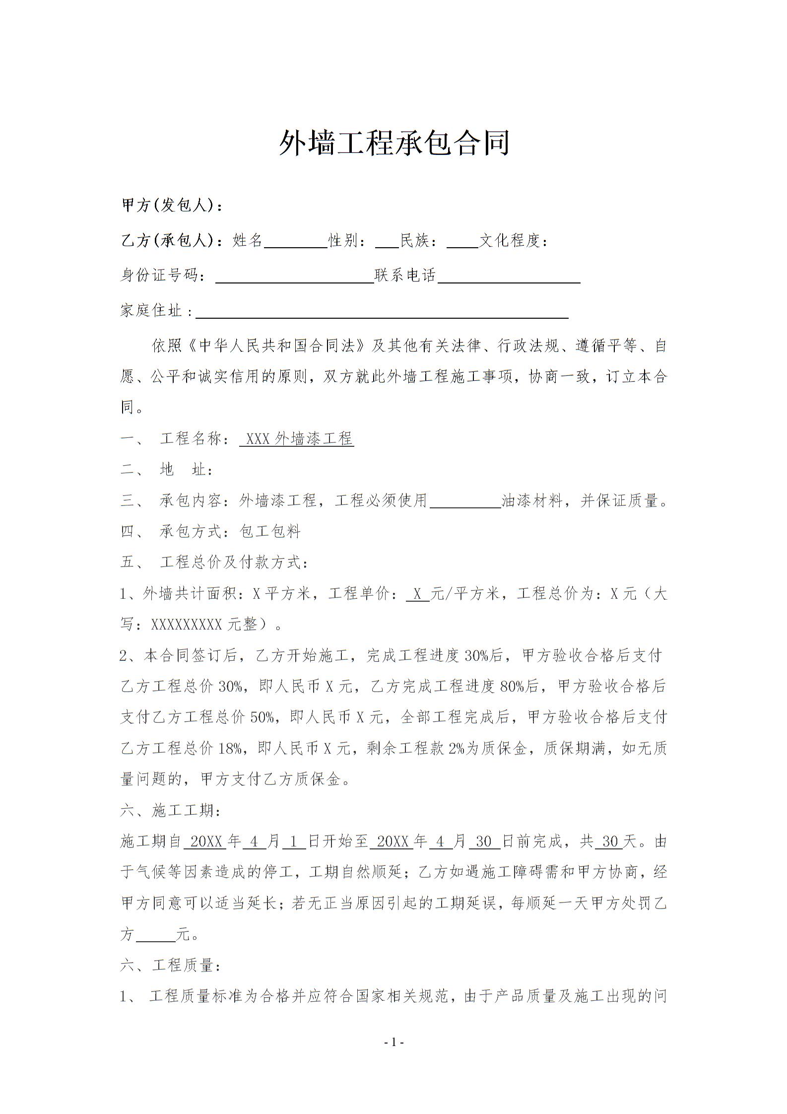 外墙工程承包合同律师拟定版本