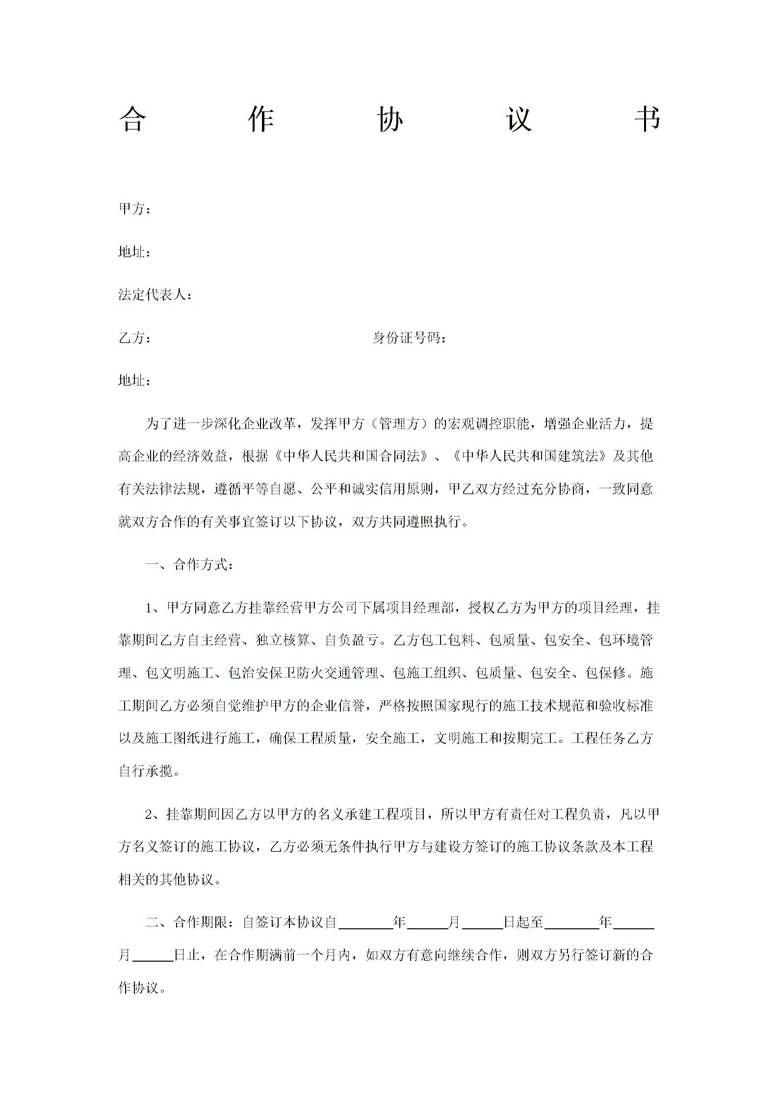 合作协议书挂靠)