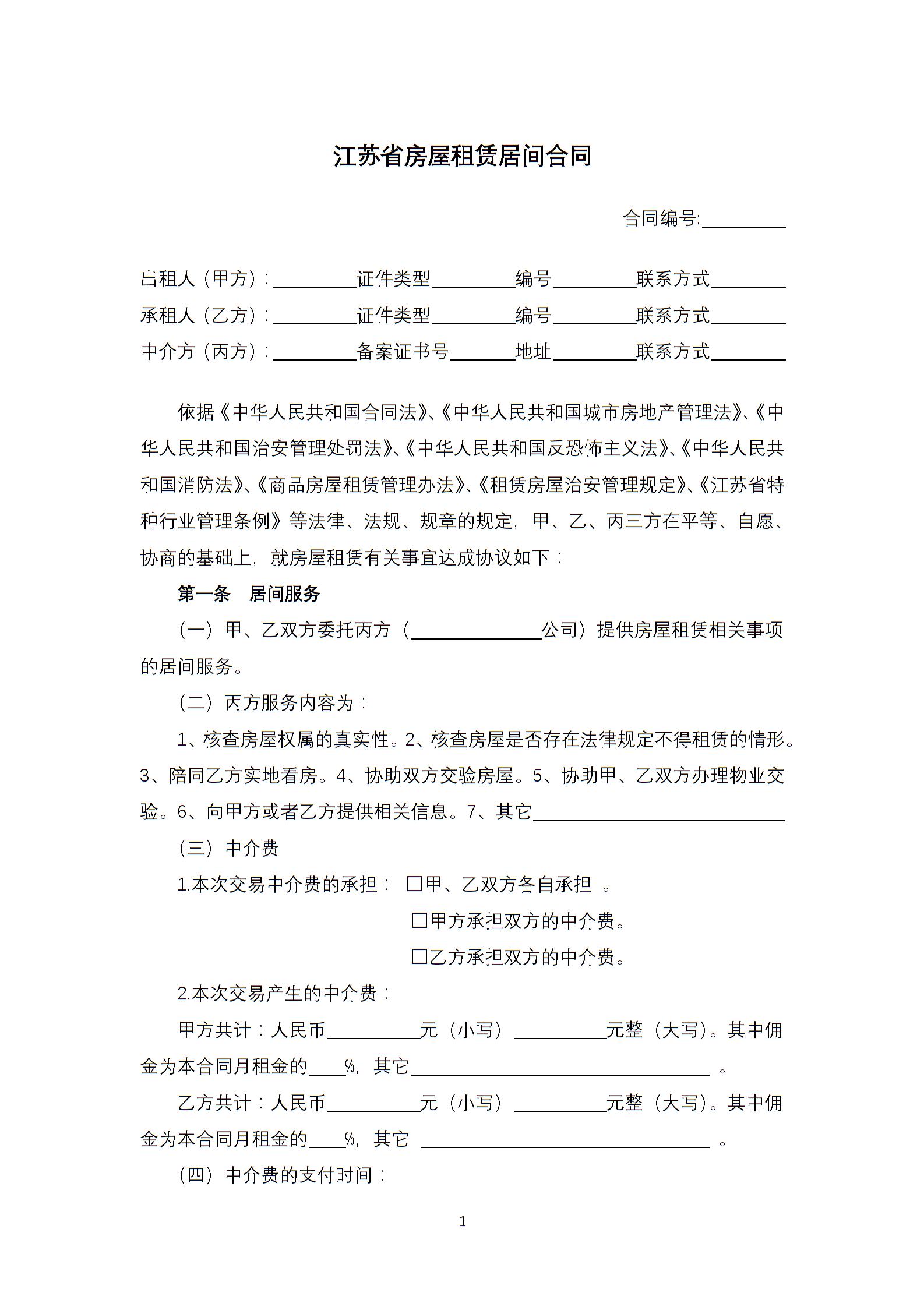 江苏省房屋租赁居间合同