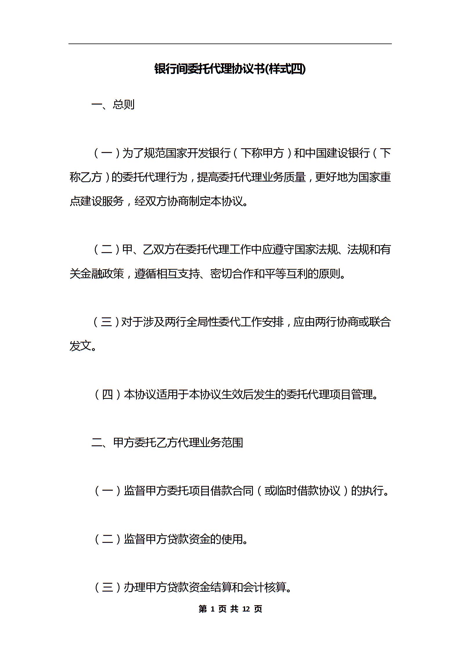 银行间委托代理协议书(样式四)
