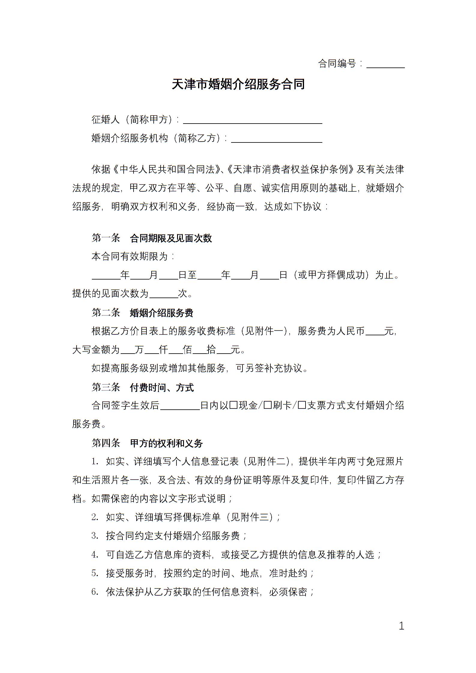 天津市婚姻介绍服务合同