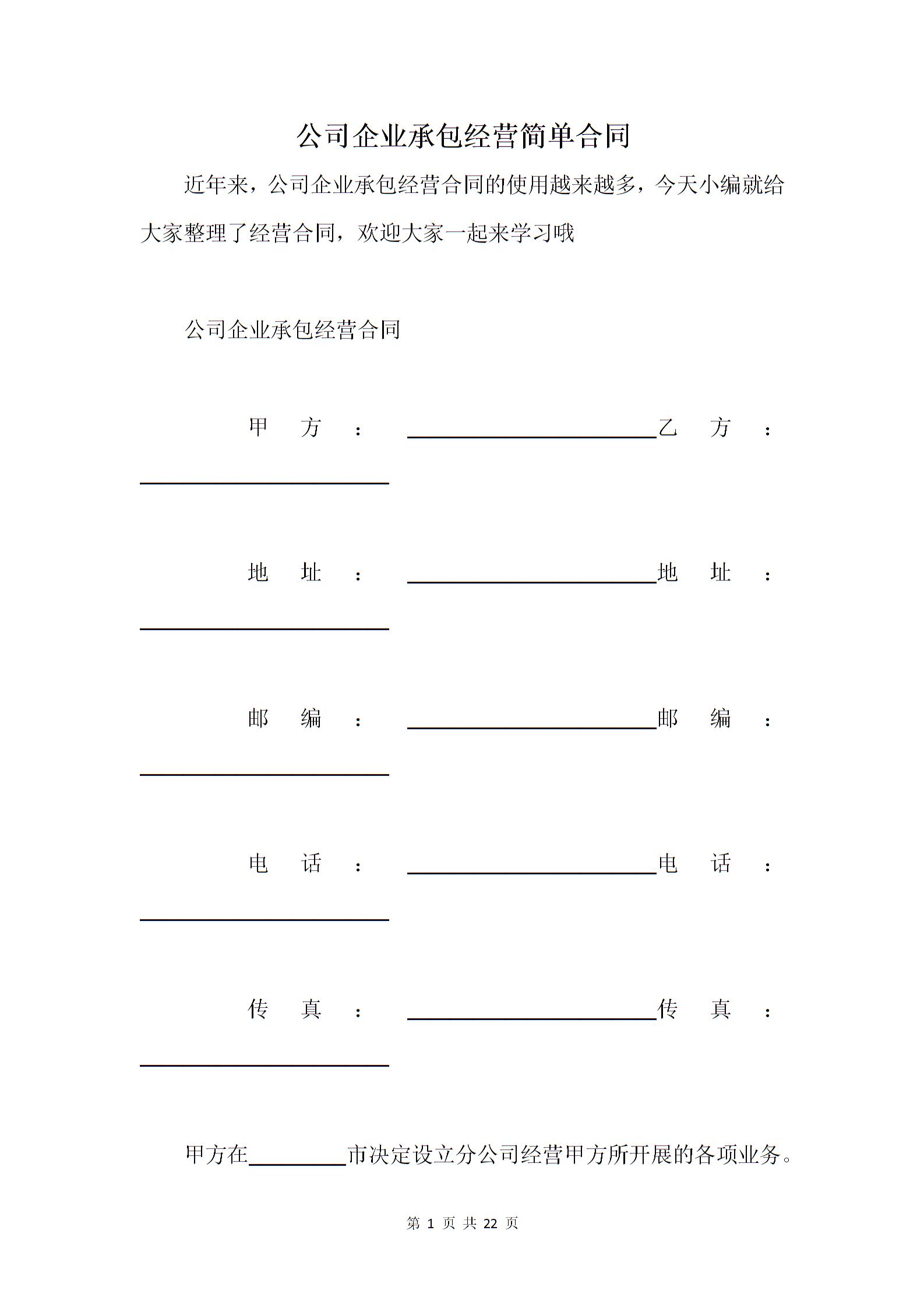 公司企业承包经营简单合同