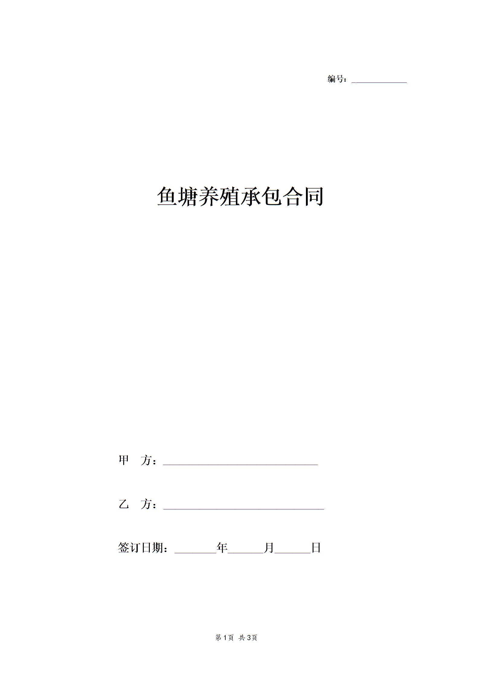 鱼塘养殖承包合同