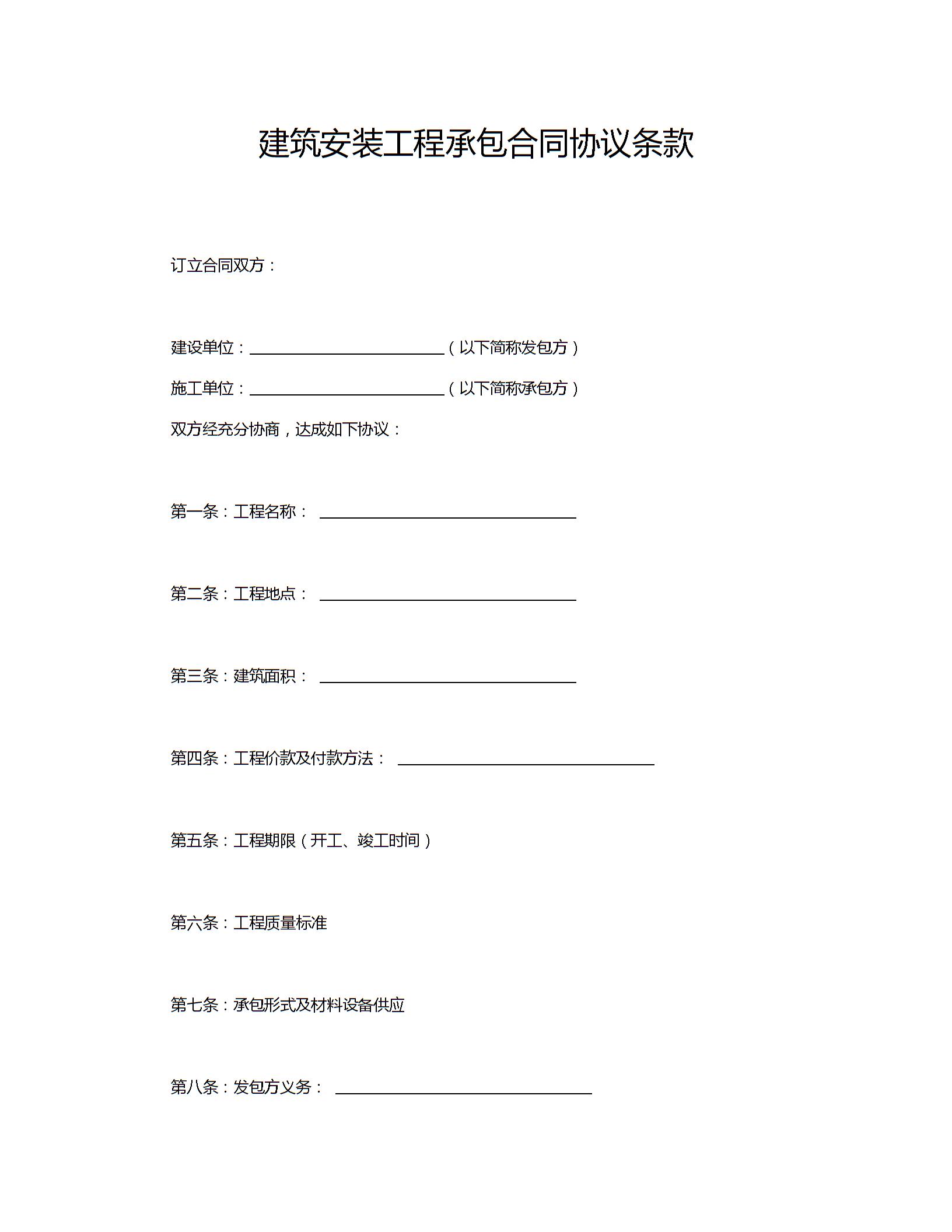 建筑安装工程承包合同协议条款