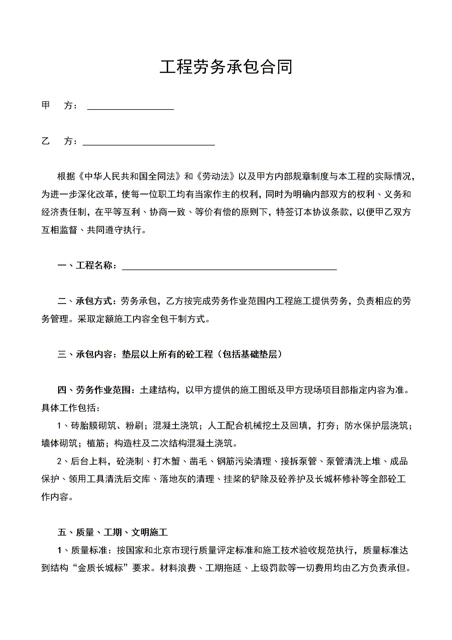 工程劳务承包合同3