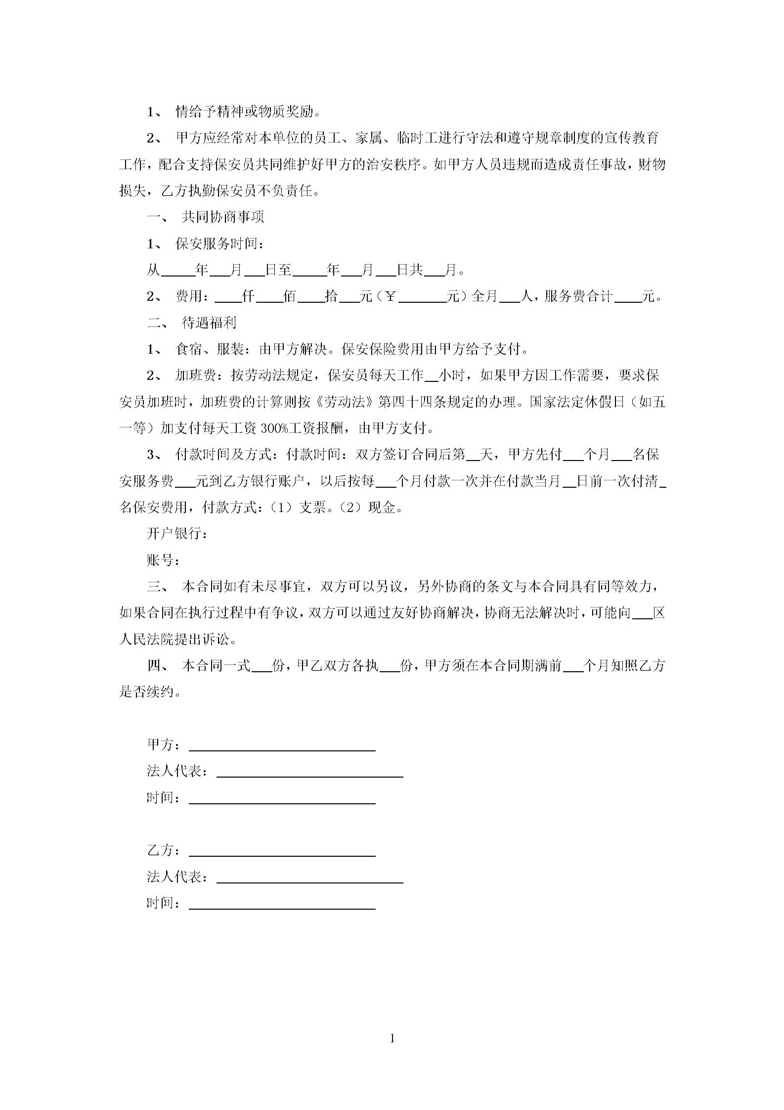 物业保安承包合同