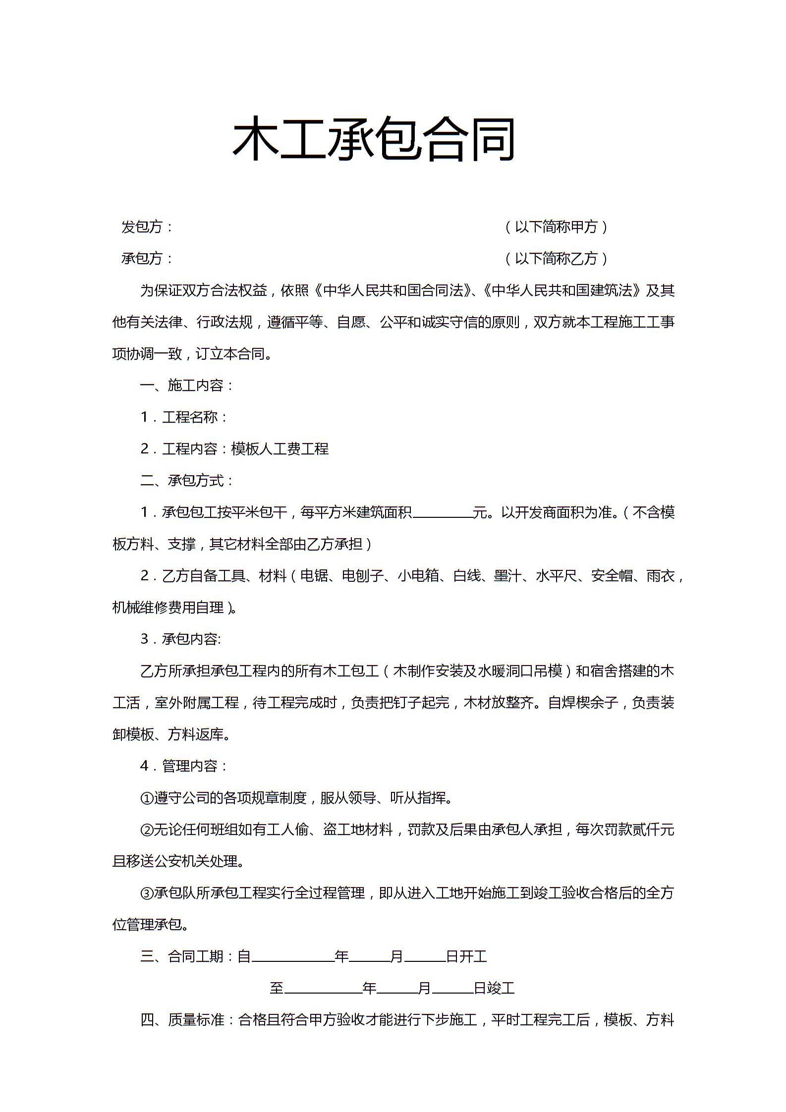 木工承包合同4