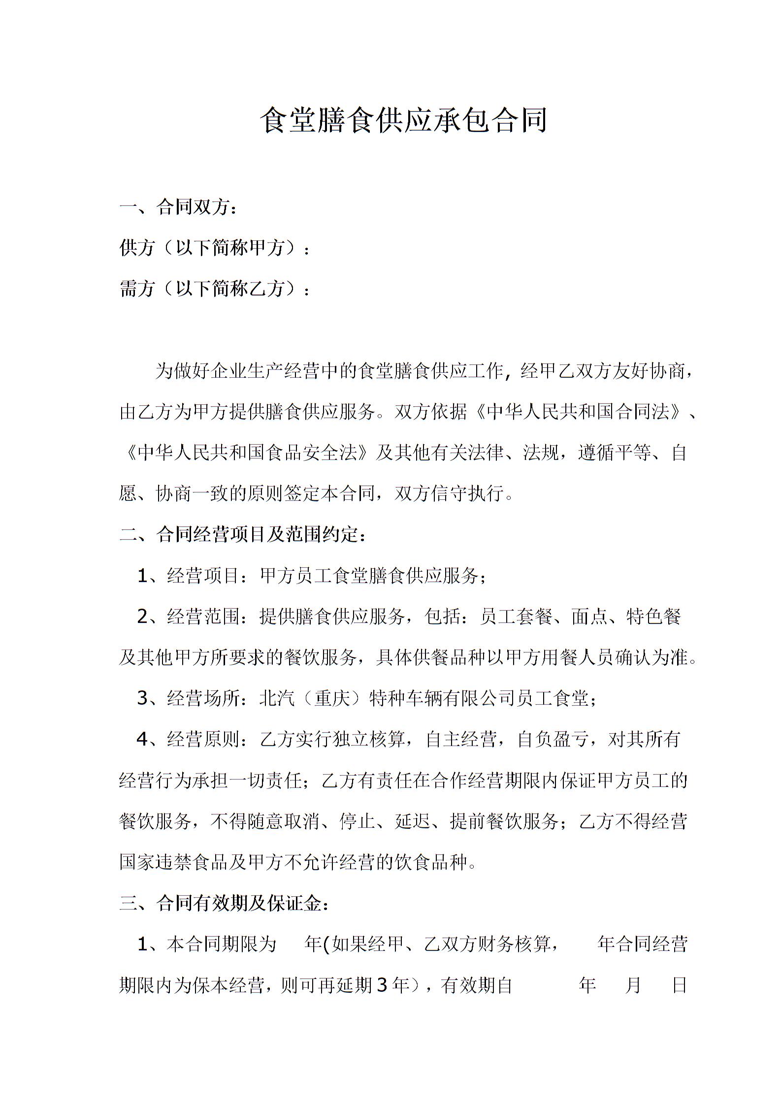 食堂膳食供应承包合同