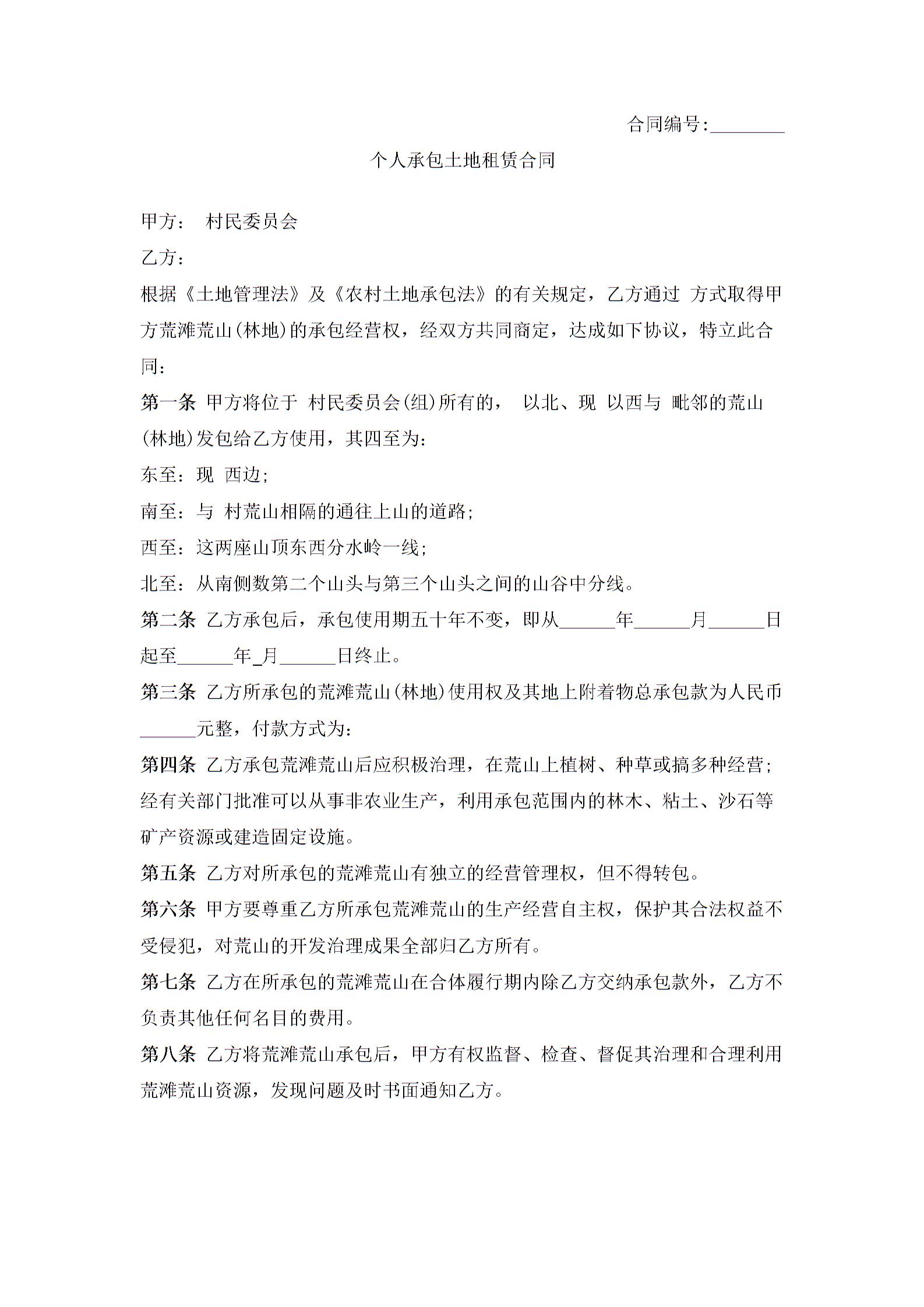 个人承包土地租赁合同