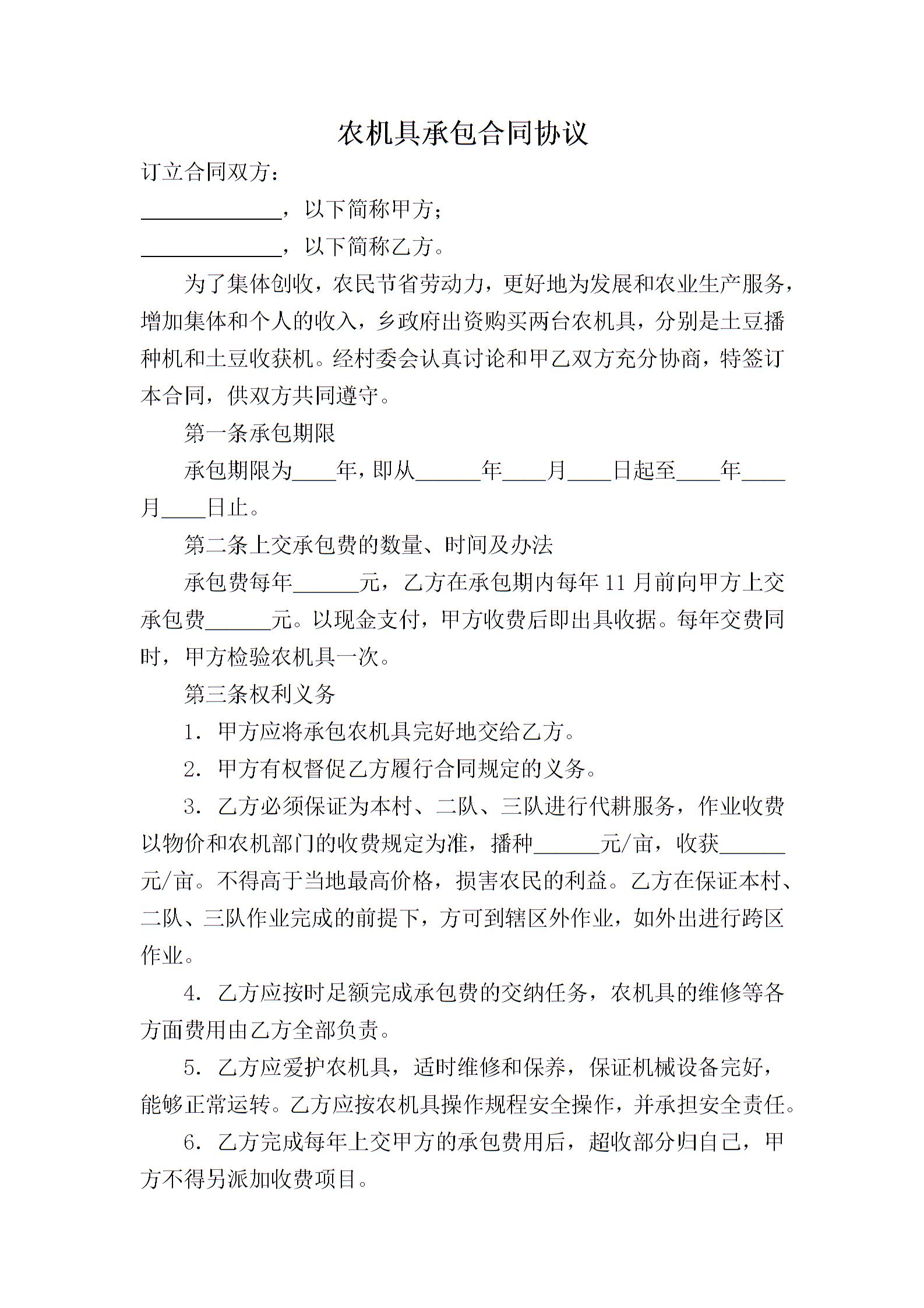 农机具承包合同协议