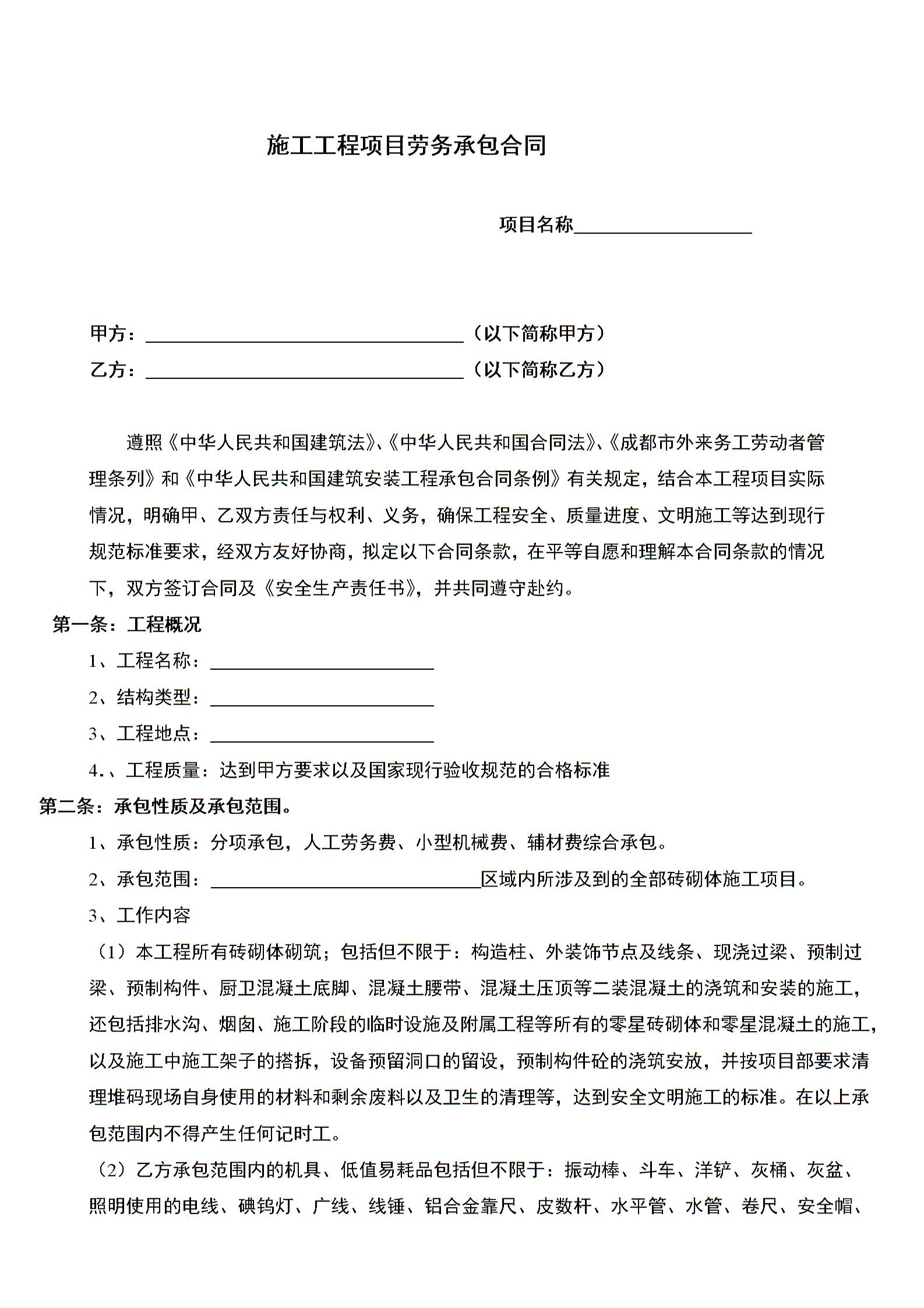 施工工程项目劳务承包合同