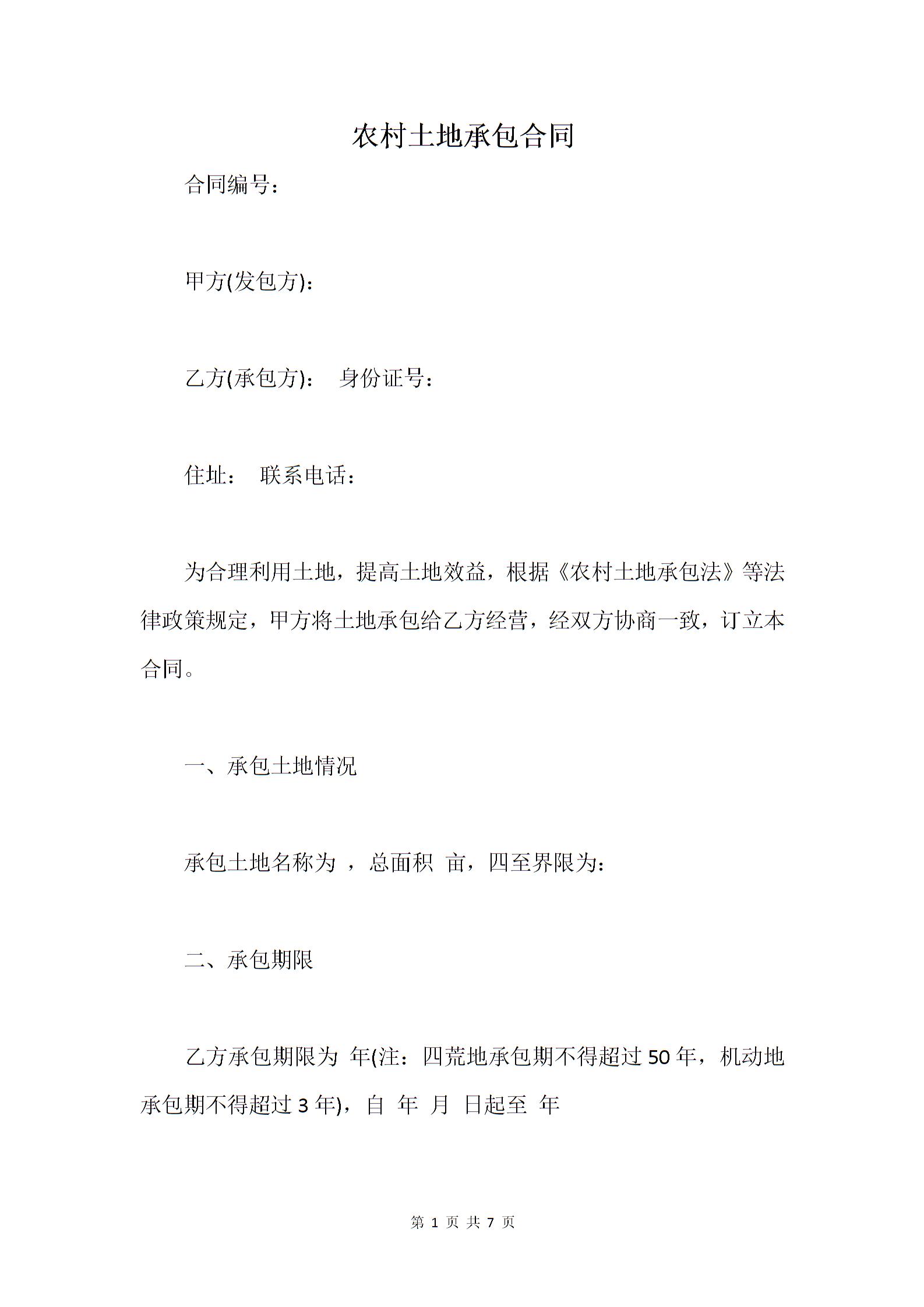农村土地承包合同