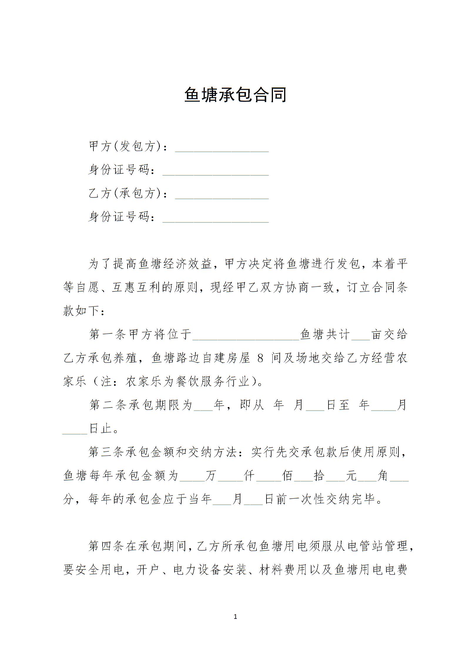 鱼塘承包合同