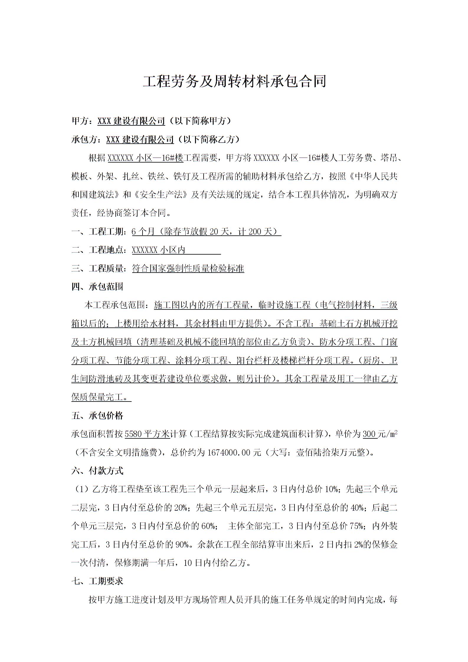 工程劳务承包合同(实用范本)