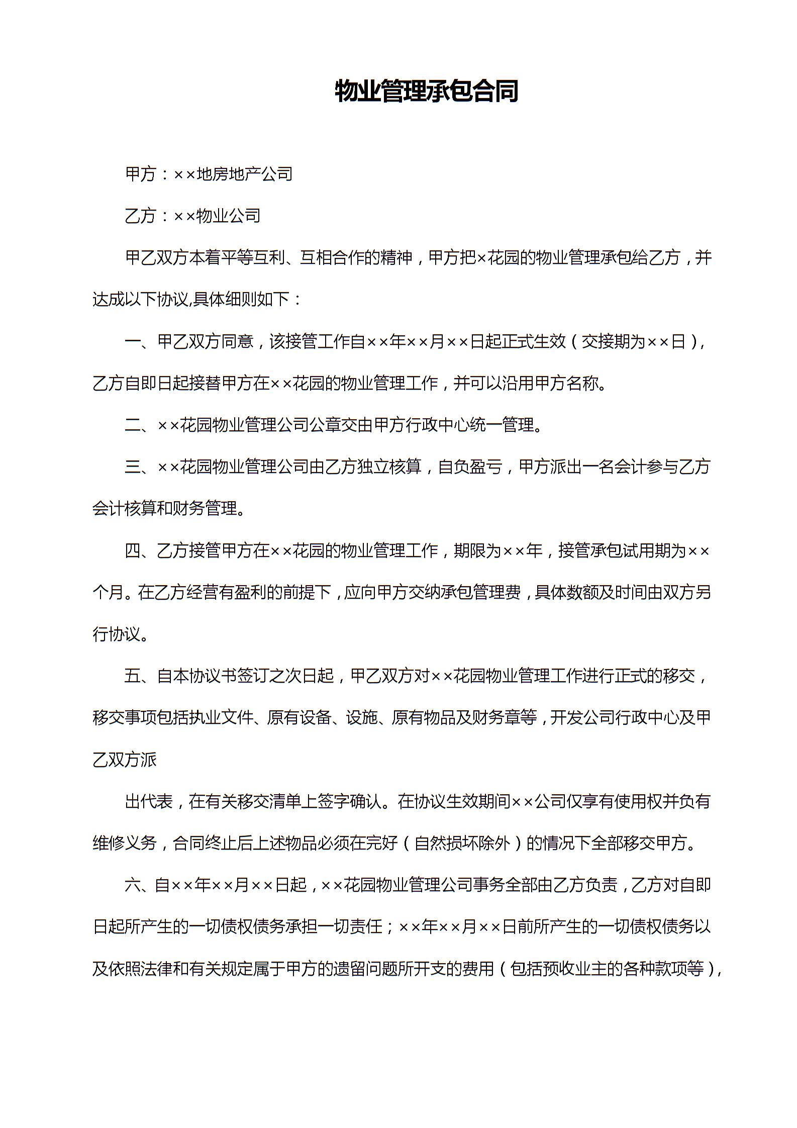 物业管理承包合同模板