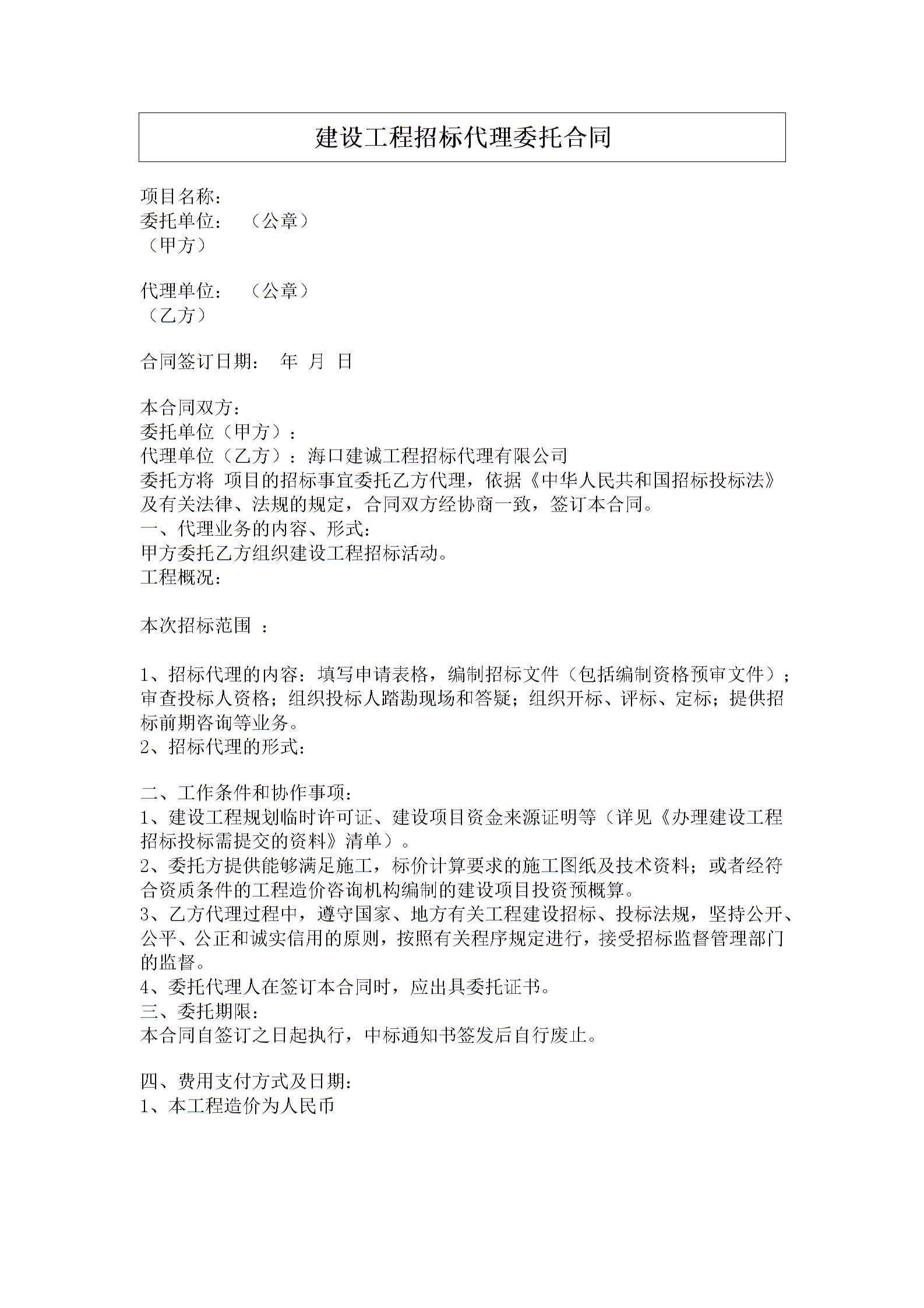 建设工程招标代理委托合同