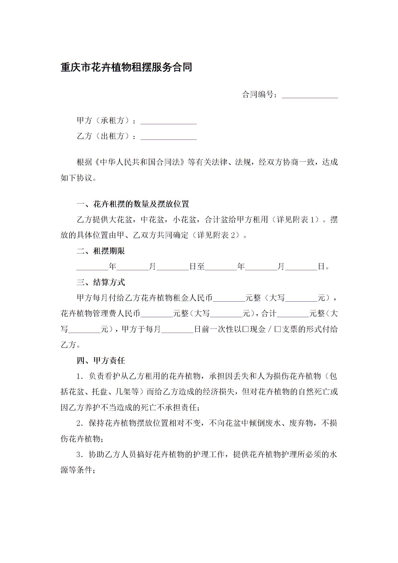 重庆市花卉植物租摆服务合同