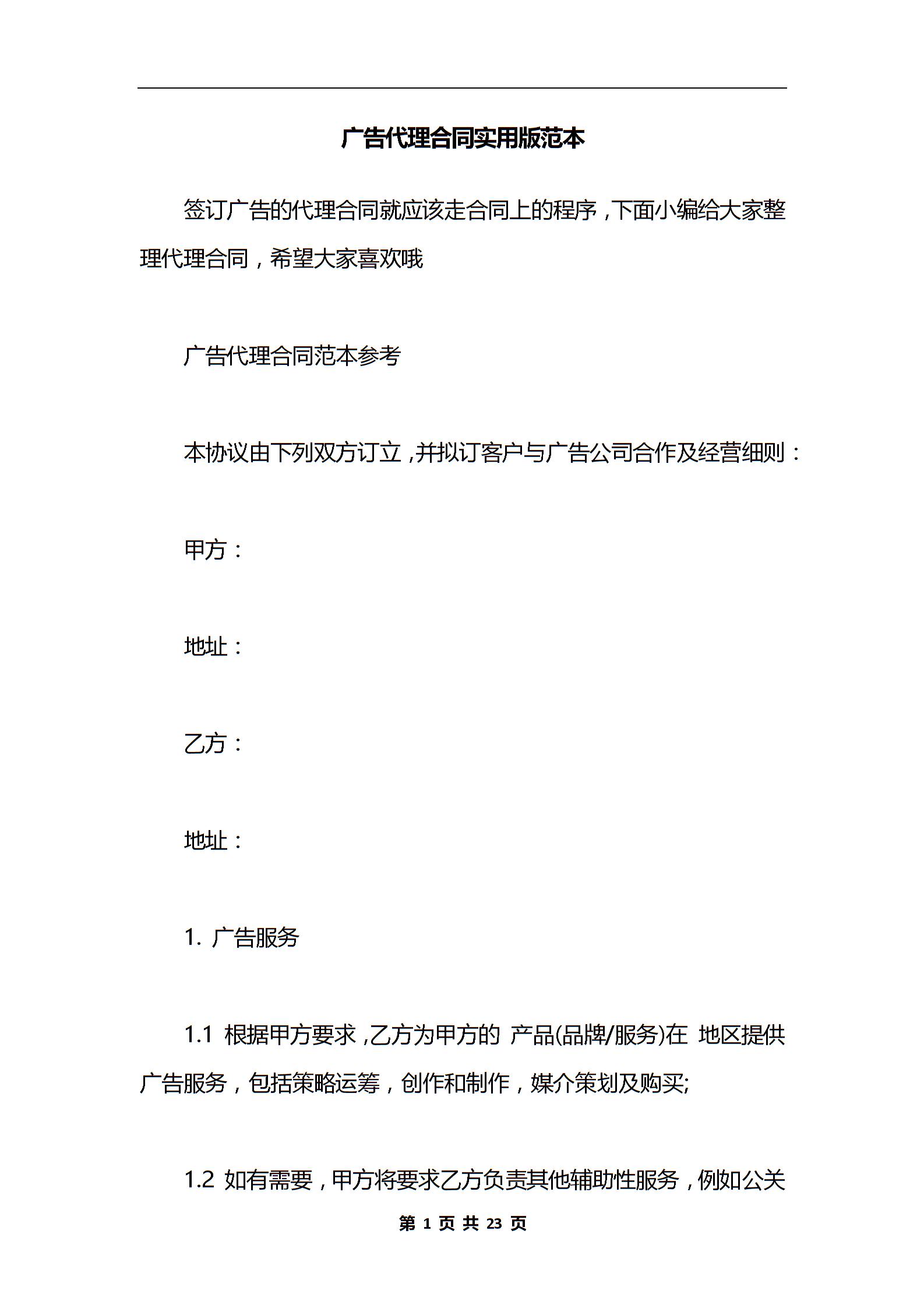 广告代理合同实用版范本