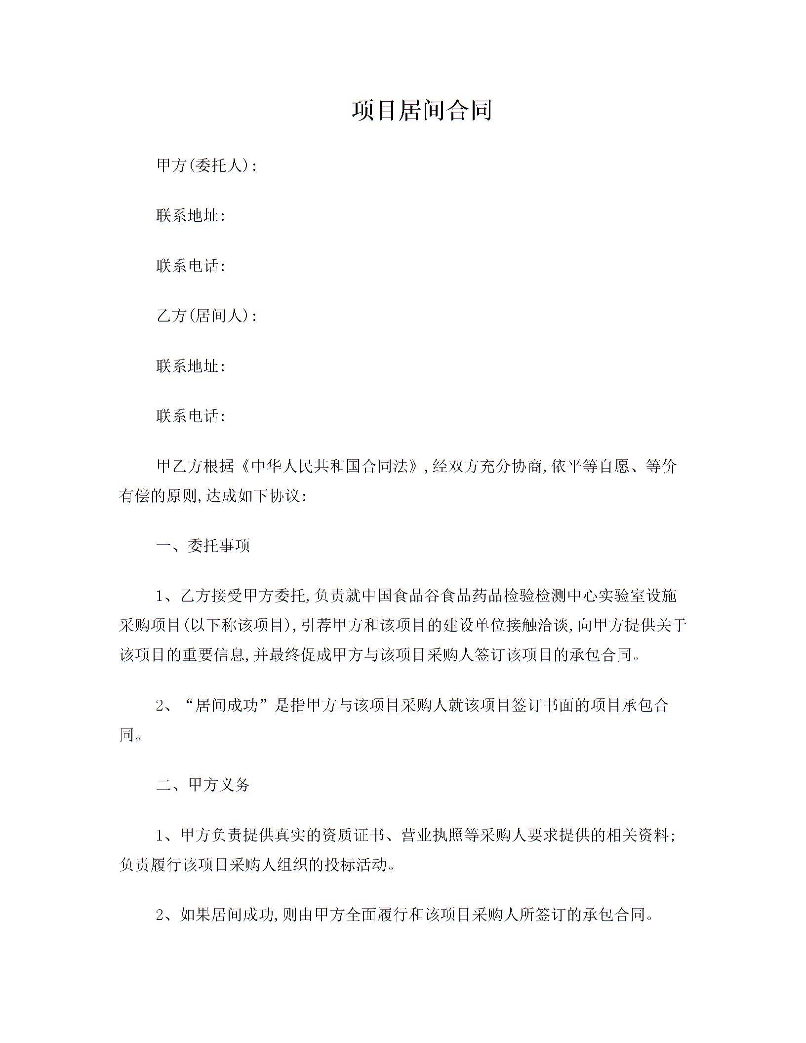 项目居间协议居间合同