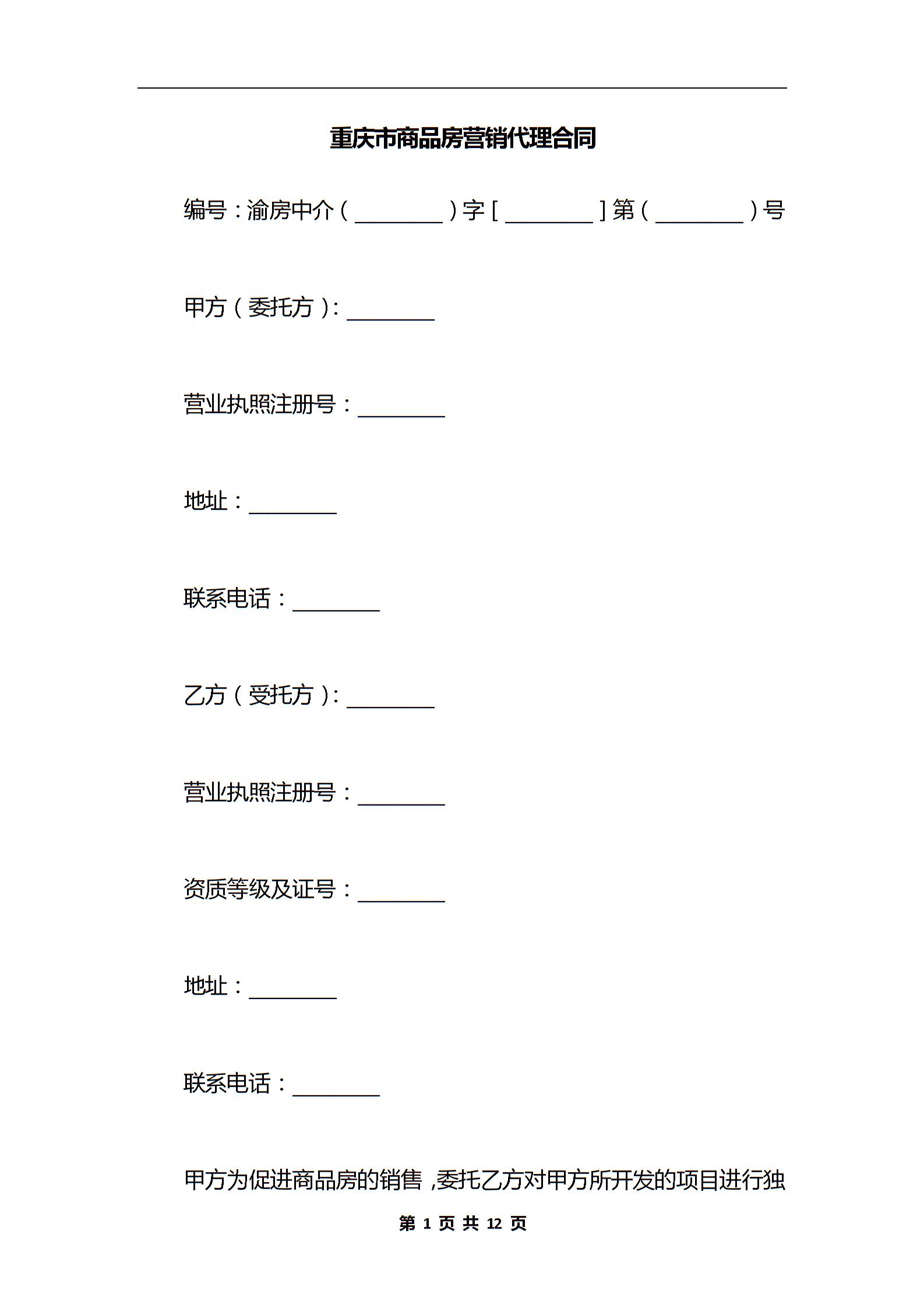重庆市商品房营销代理合同_1