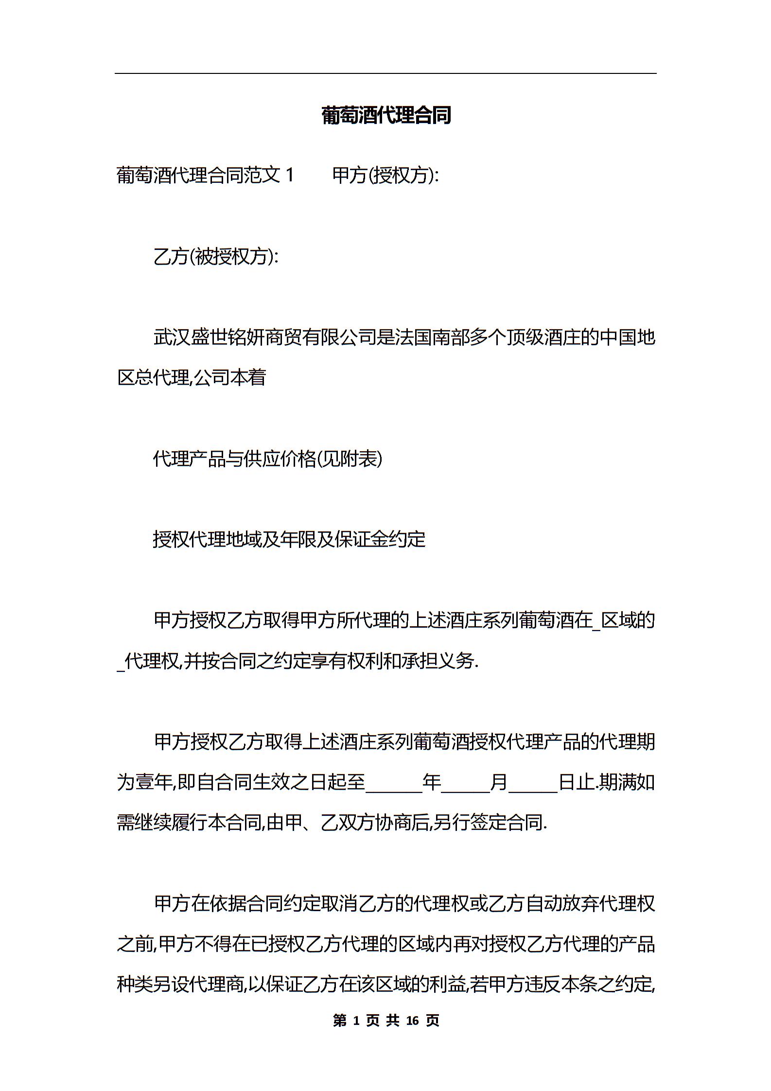 葡萄酒代理合同