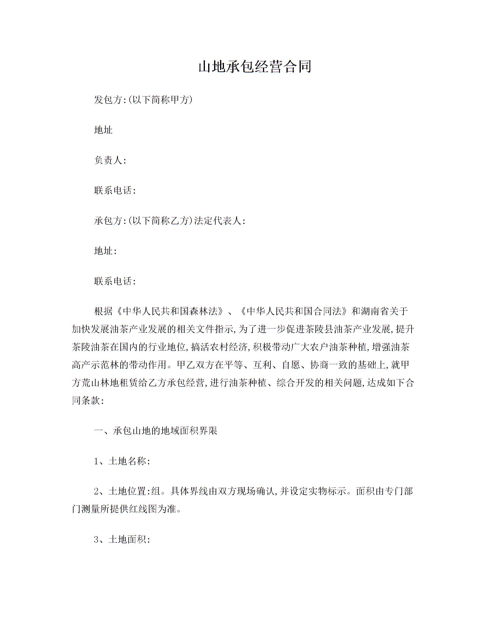 山地承包经营合同