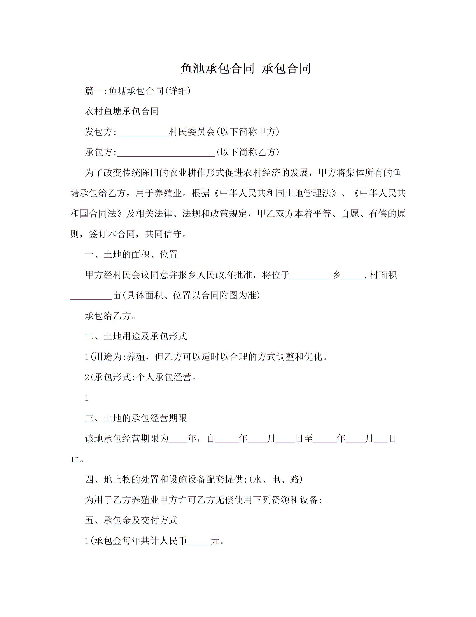 鱼池承包合同 承包合同