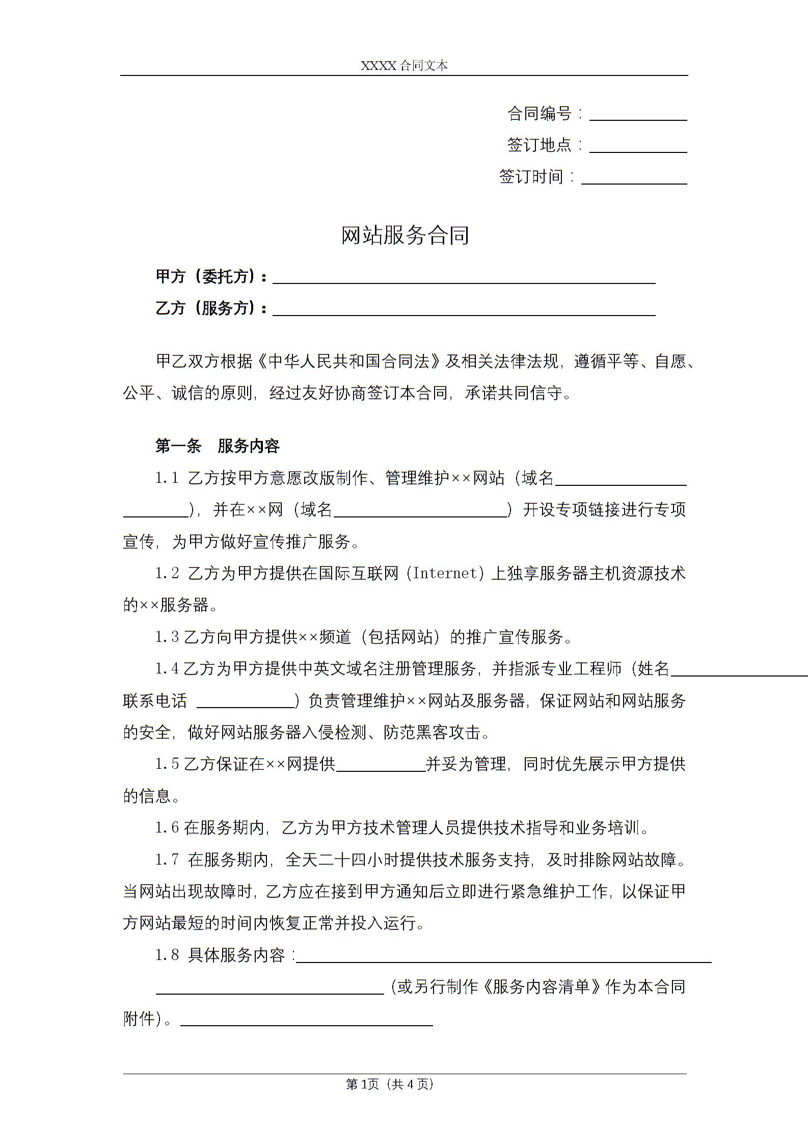 网站服务合同
