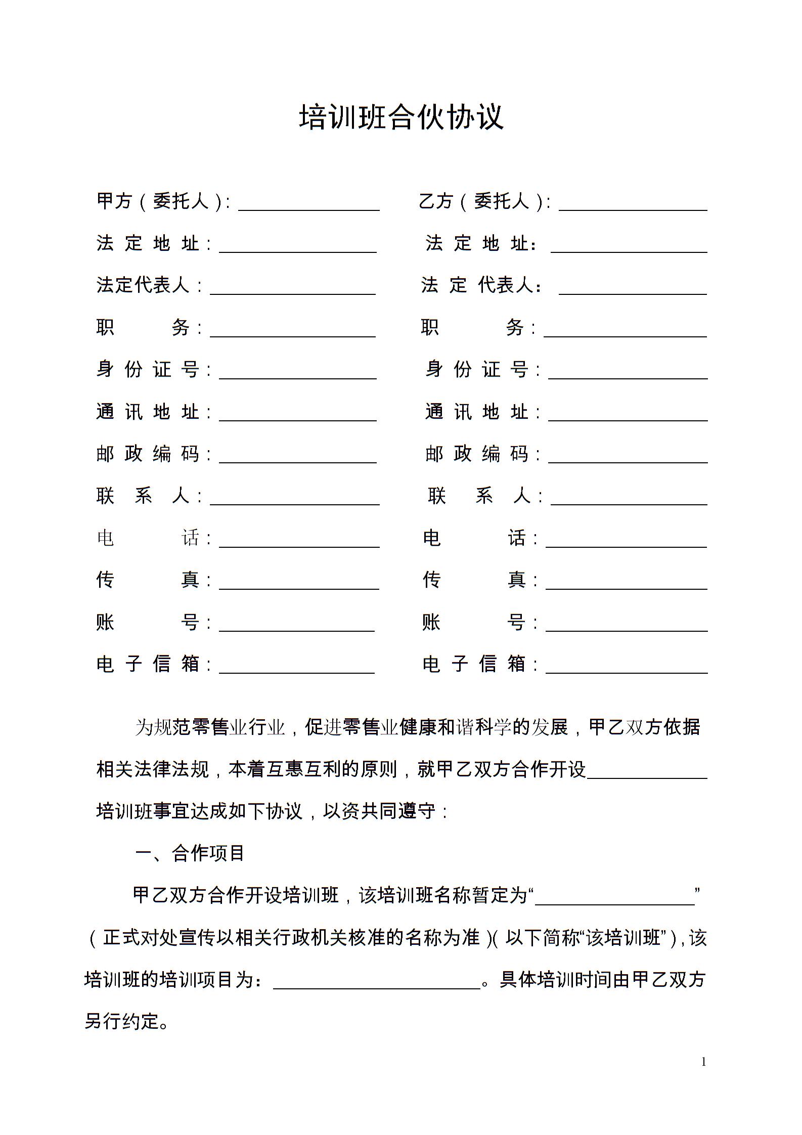 培训班合伙协议0模板