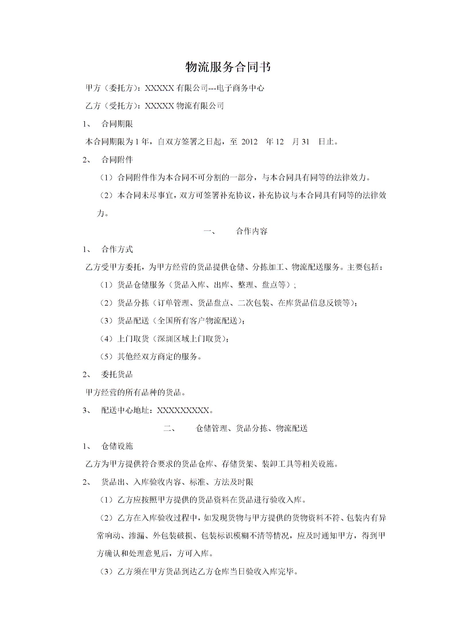 电子商务物流服务合同书