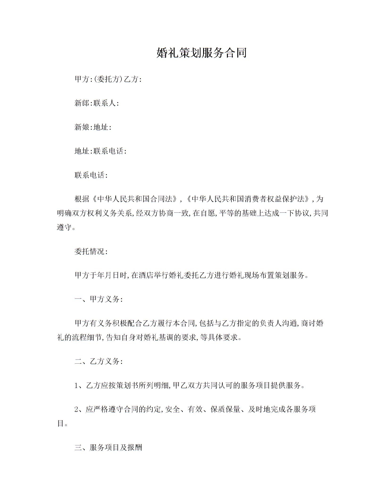 婚礼策划服务合同