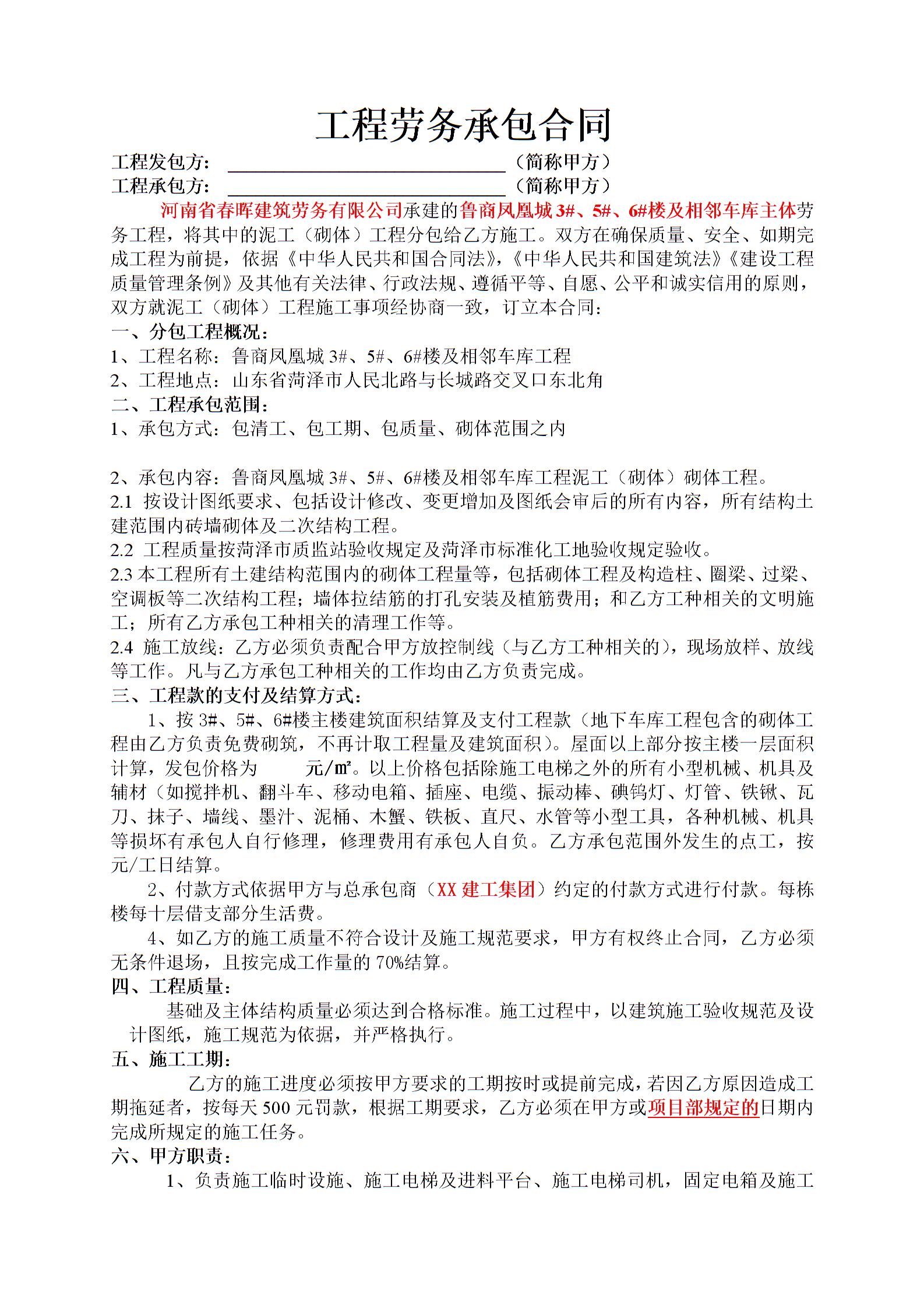 工程劳务承包合同