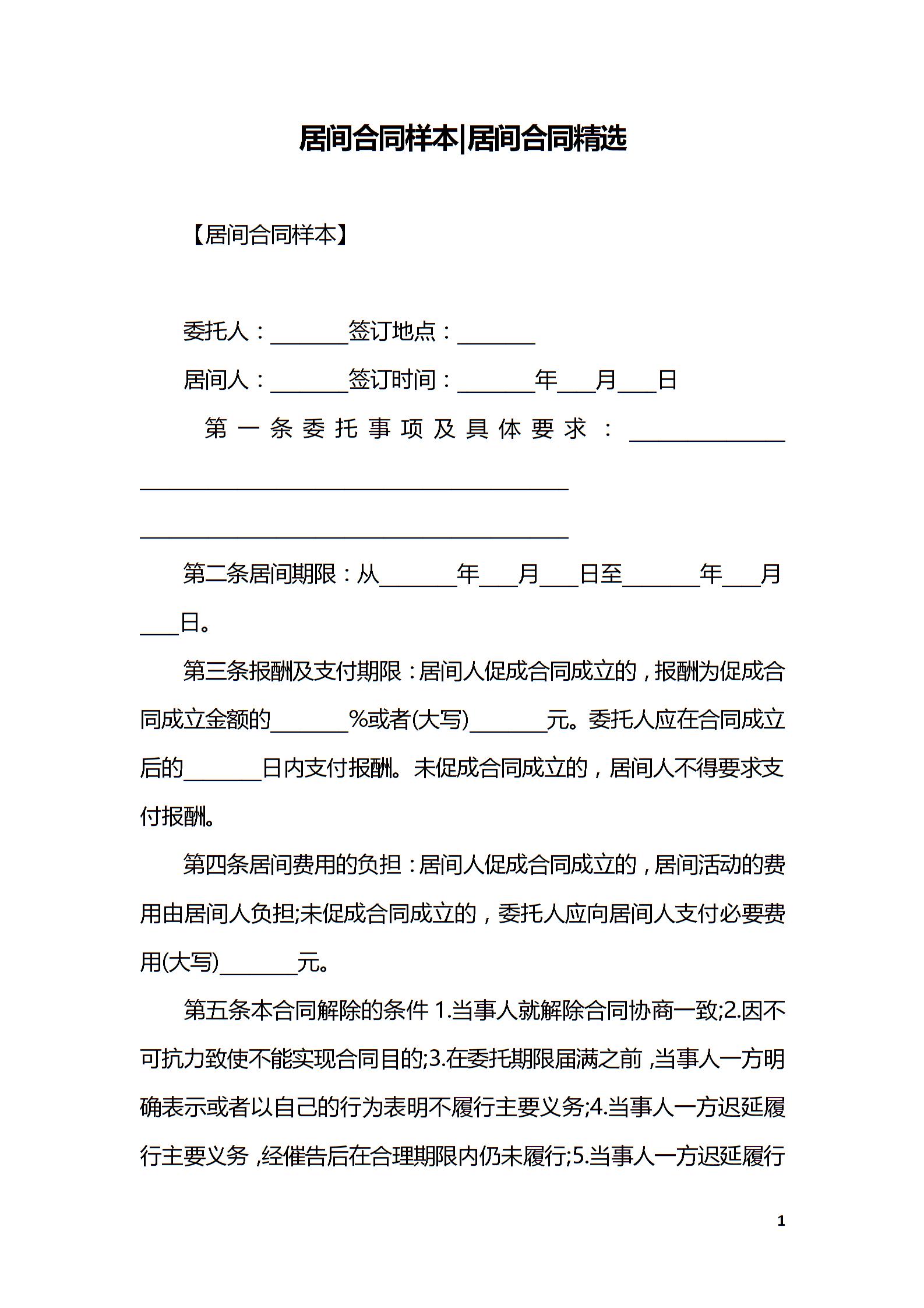 居间合同样本-居间合同精选